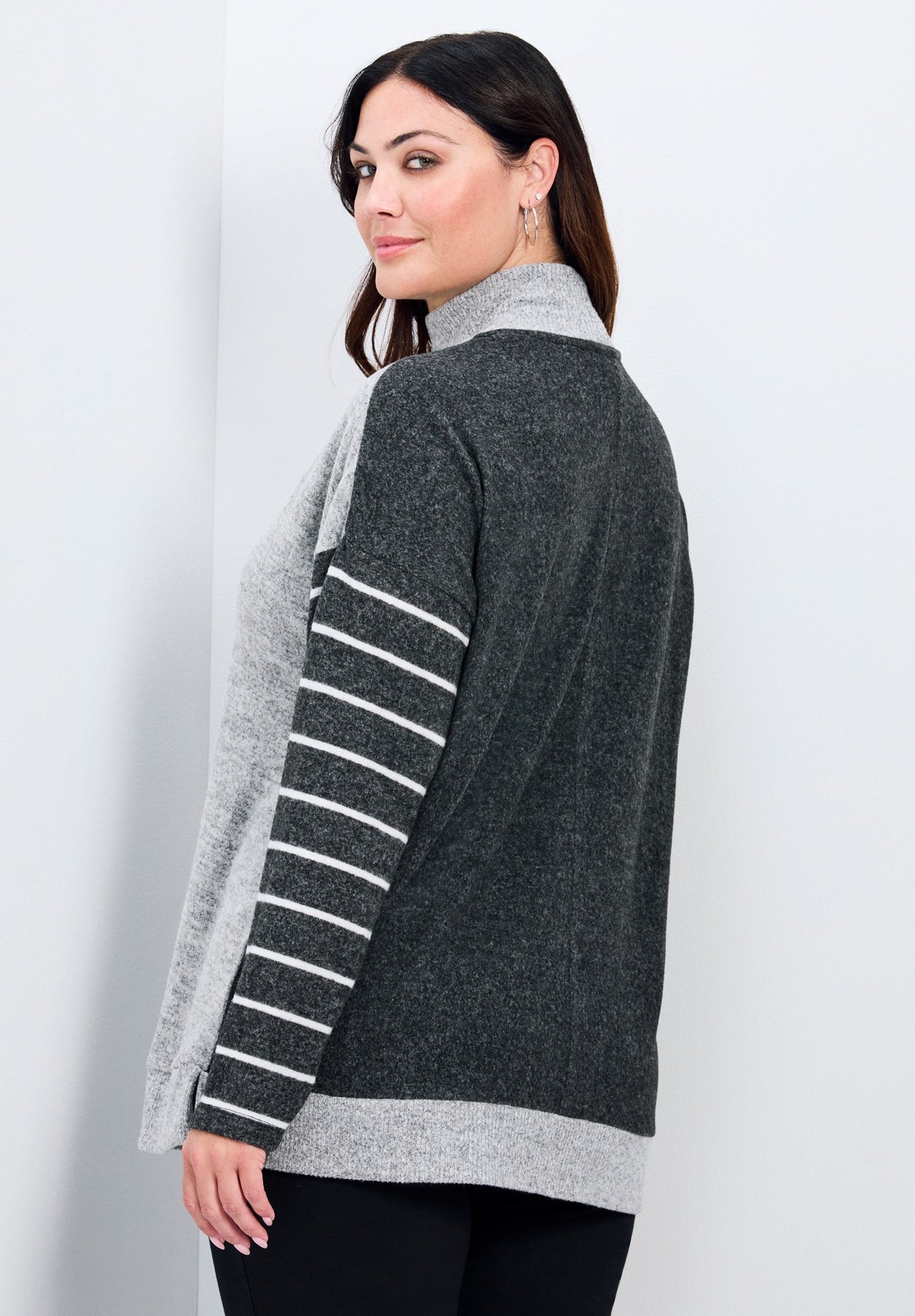 Meet the Theresa Splice Top – where comfort meets style! With its cozy brushed hacci fabric and playful color-blocked design, this turtle neck top is perfect for those relaxed weekends. Slip into long sleeve coziness and make a bold statement with stripe sleeves – your new go-to for effortlessly chic vibes!