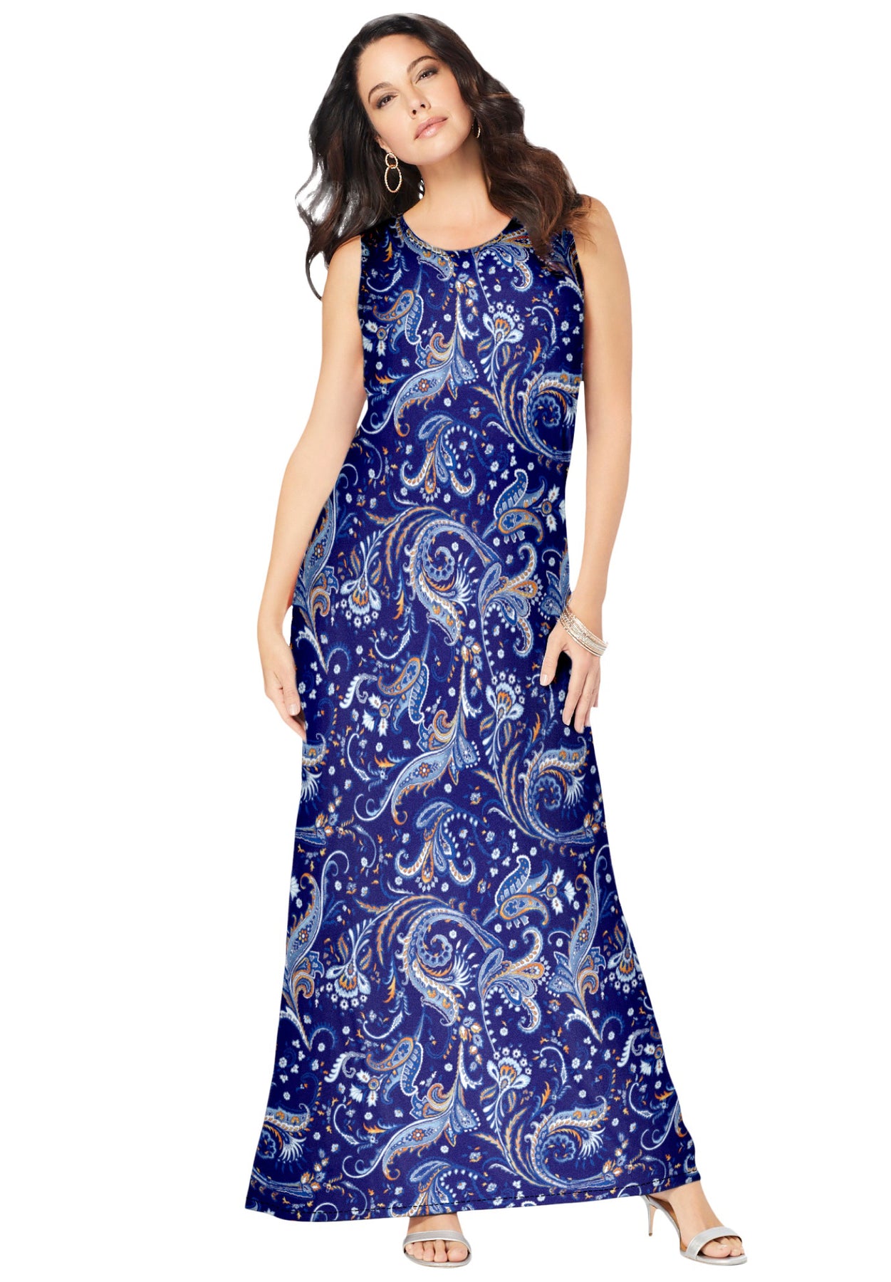 Plus Size Sleeveless Crew Neck Maxi Dress