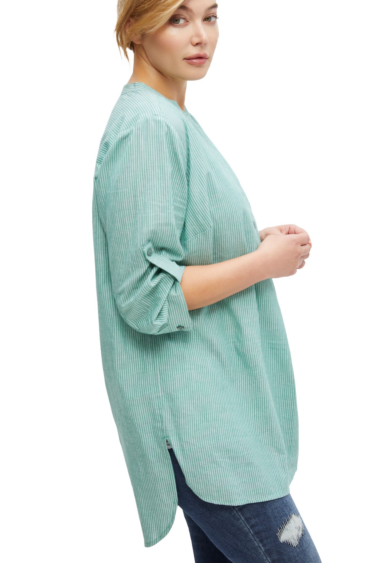 Three-Quarter Sleeve Roll Tab Relaxed Fit 100% Cotton Henley Tunic