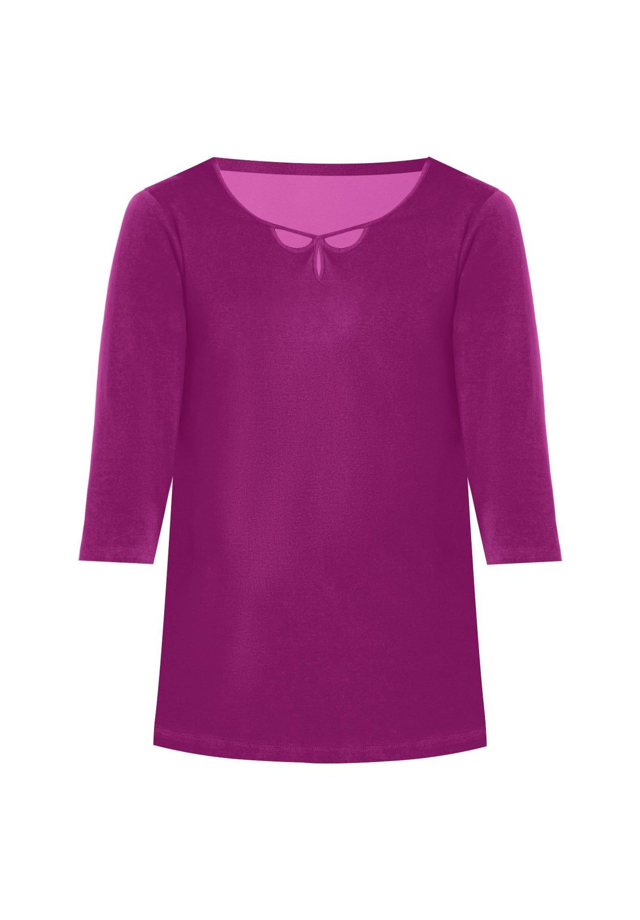 FIT: Relaxed and easy silhouette. Triple keyhole neckline. 3/4 sleeves.