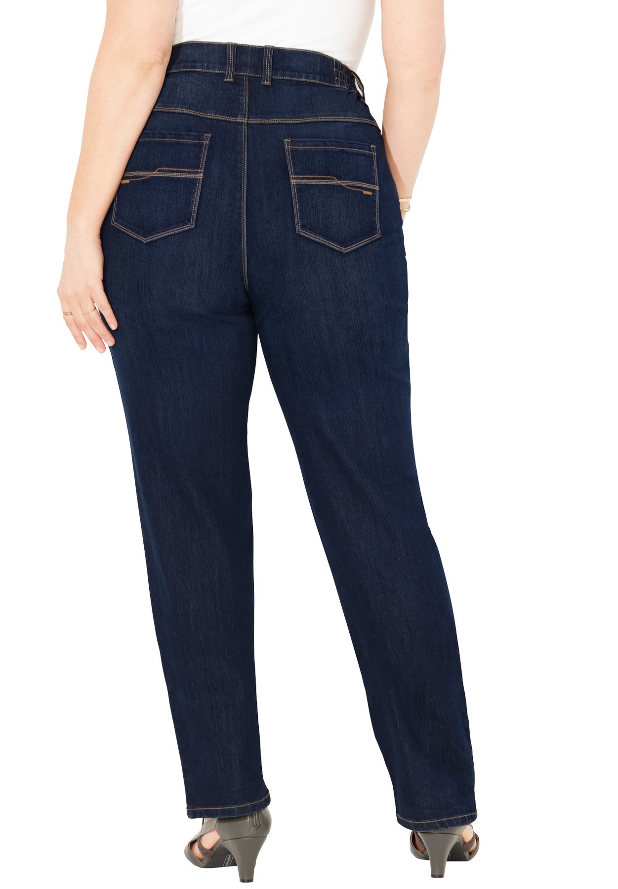Created to solve the common fit challenges of gaping at the waist and tightness through the hips, this straight leg jean offers a smooth, flattering fit that feels comfortable and consistent every time you put it on. The versatile silhouette transitions easily from desk to dinner, with flexible stretch denim that offers all-day comfort and ease.