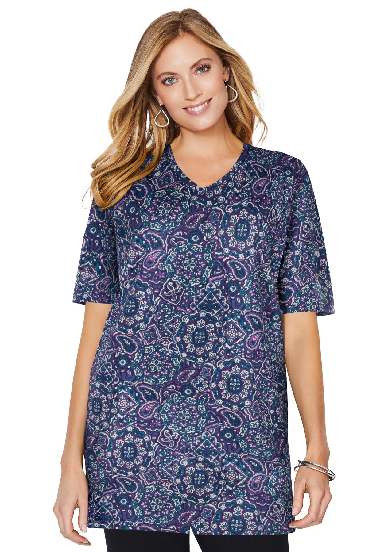 Easy Fit Short Sleeve V-Neck Tunic | Catherines