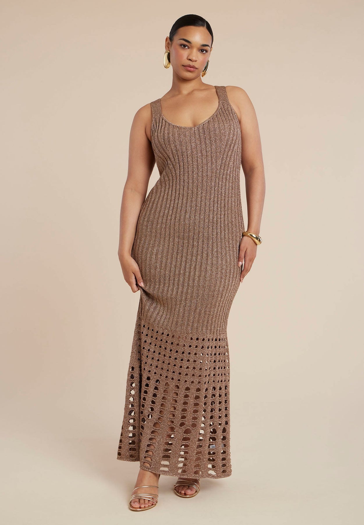 Metallic Open Stitch Sweater Dress | ELOQUII