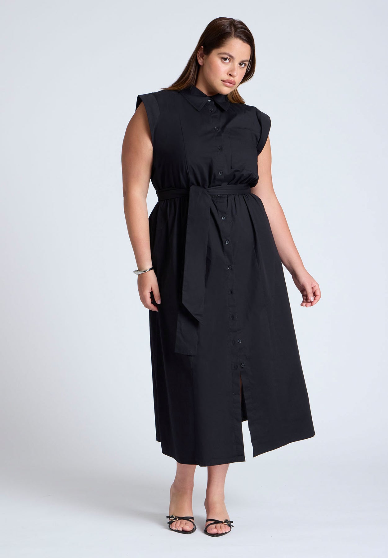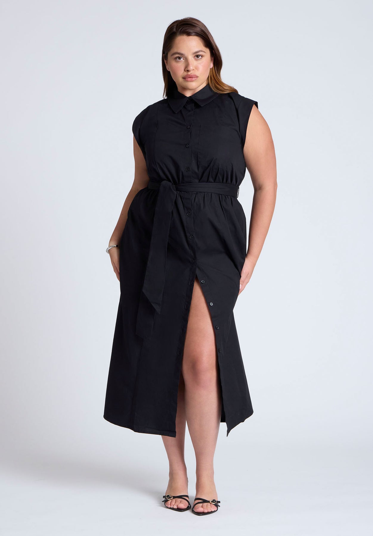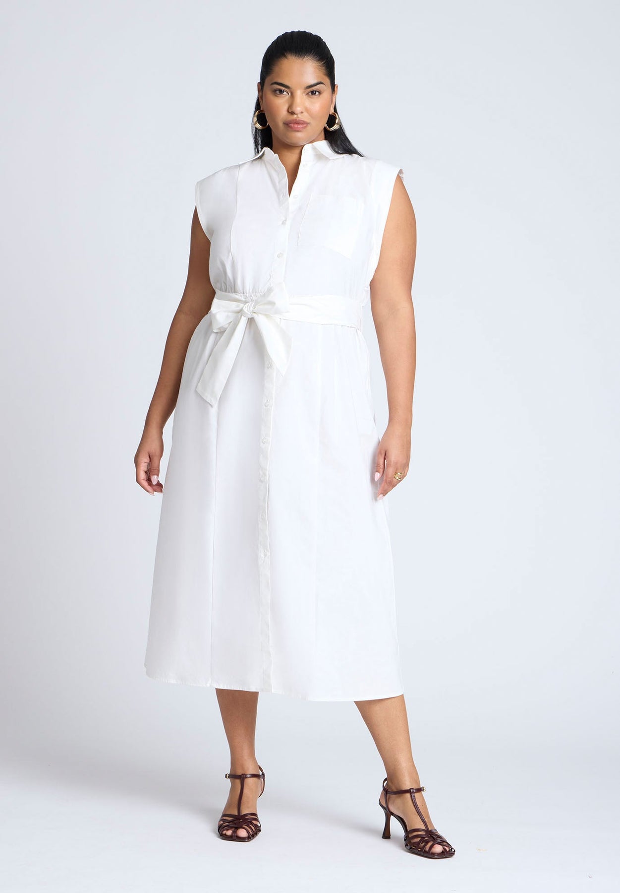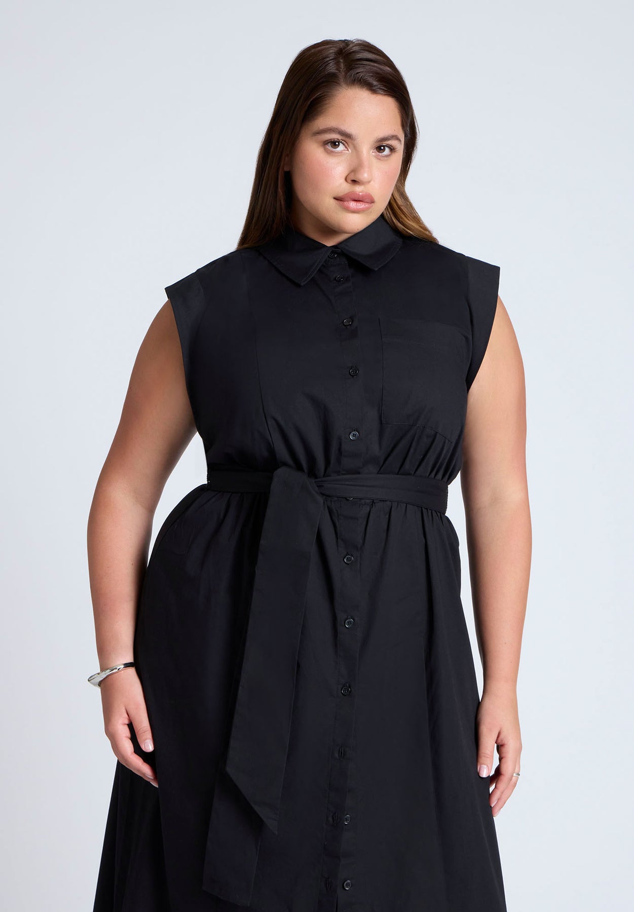 Midi Sleeveless Shirt Dress | ELOQUII Elements