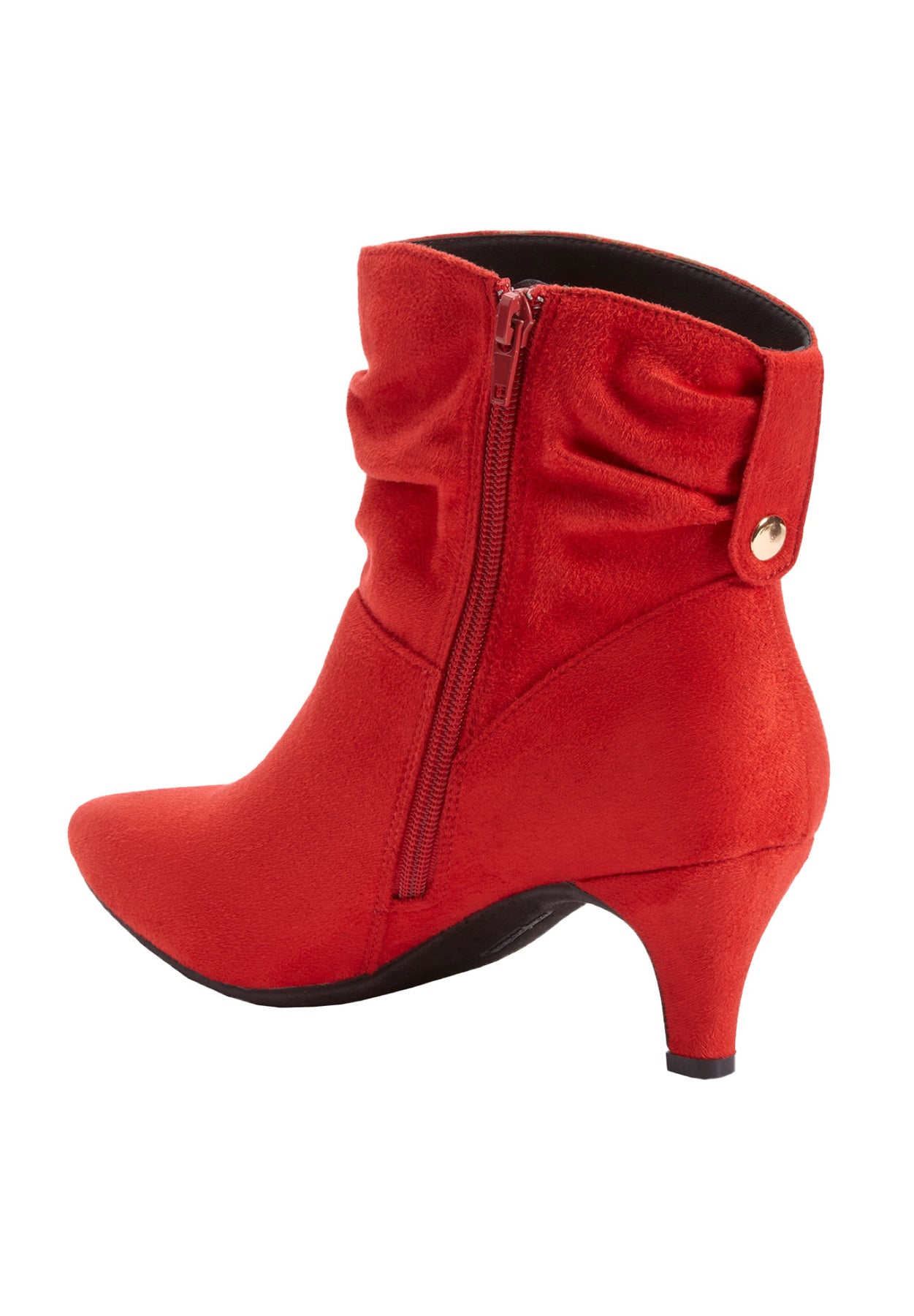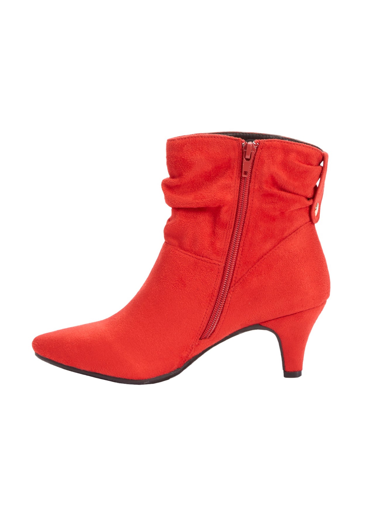 Suede-like kitten heel booties available in full and half sizes 7-11, 12