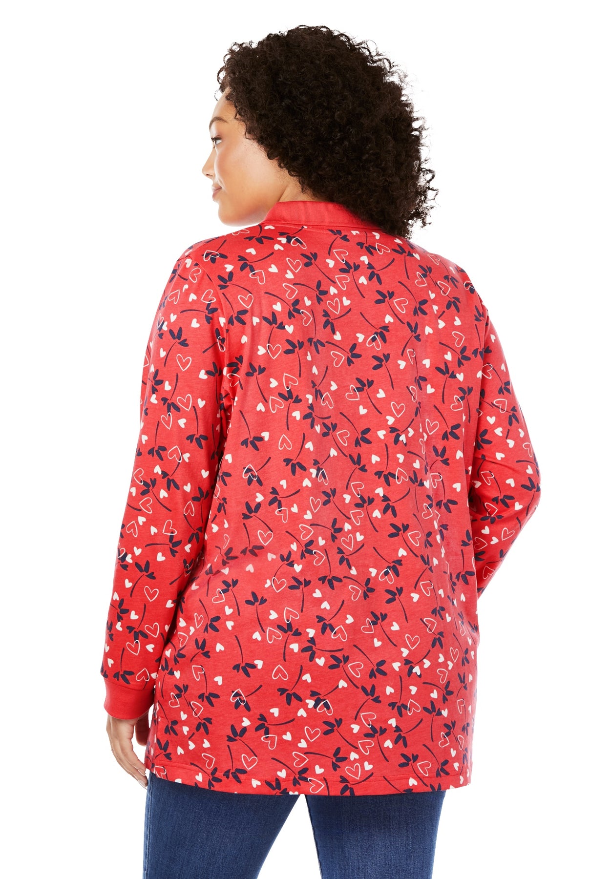 This roomy polo knit is a cute choice for relaxed comfort and breathable ease. Ribbed cuffs allow you to push the sleeves up for a casual look, or wear them down, and a four-button placket with collar stays in line with the classic polo look. Made in our most-loved tunic length.