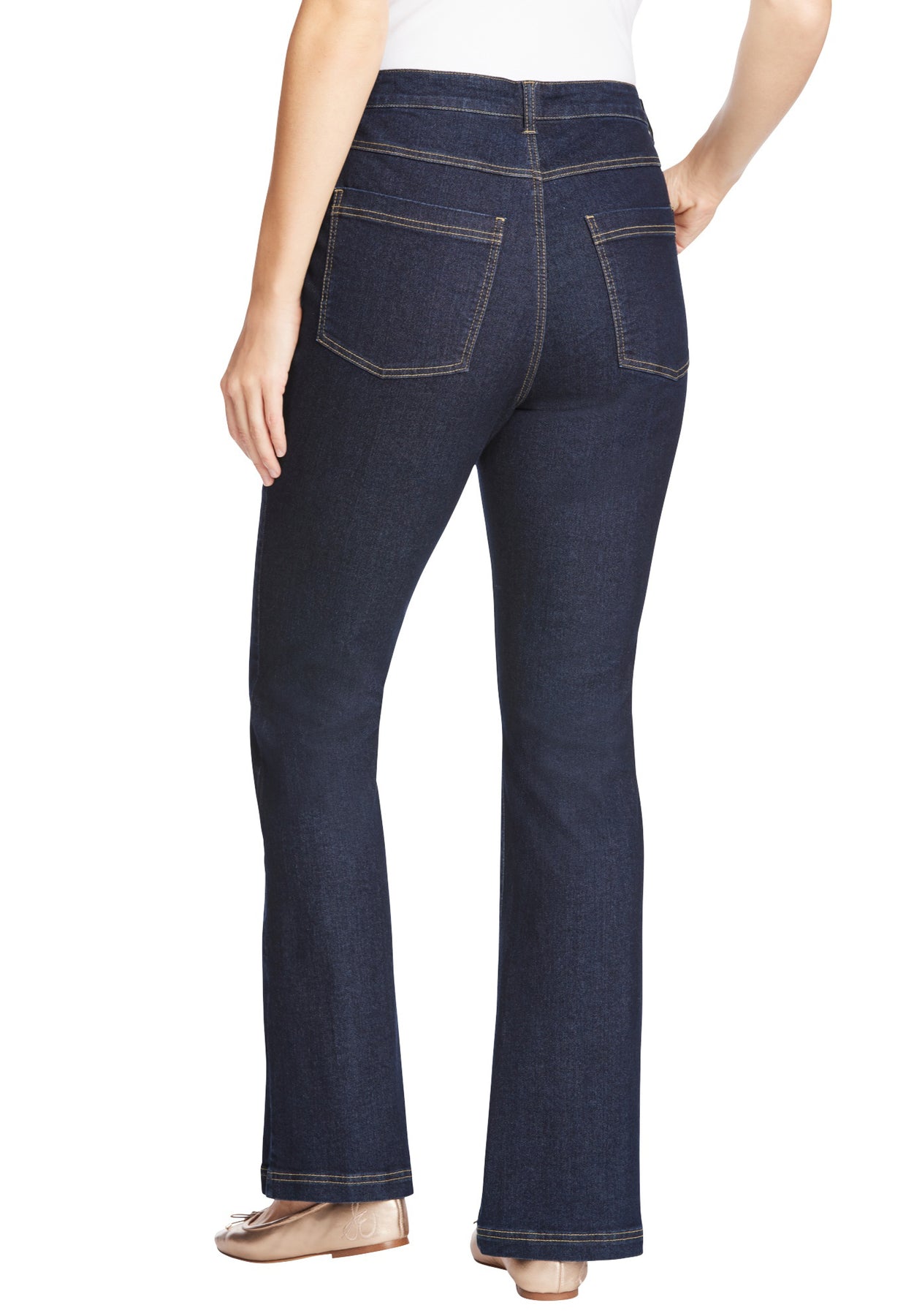 These classic five-pocket jeans are made from soft stretch cotton for a great fit that moves with your body. A bootcut-leg pairs with your favorite shoes effortlessly. Our special stretch blend hugs your curves comfortably, achieving a feminine shape. The zip fly front secures with a jean tack button.