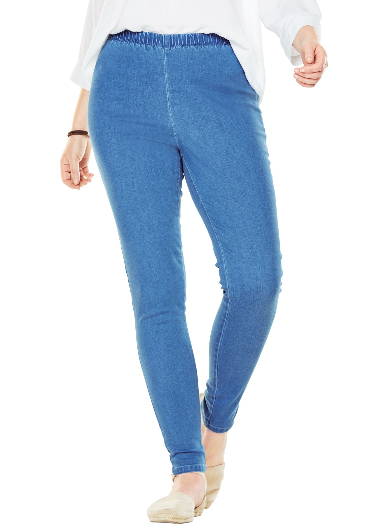 Designed with a full covered elastic waistband that pulls on easily and is comfortable all day long, these denim jeans in a jeggings fit come with added stretch for a great comfort. No pockets and a fitted leg achieve your most streamlined silhouette. Ideal for layering with tunics, creating a smooth and seamless look.