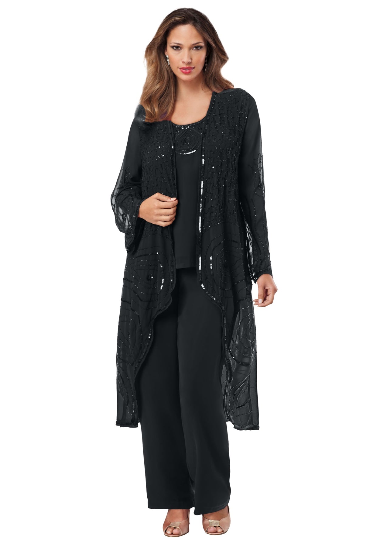 Plus Size Beaded Georgette 3-piece Pant Set – Formal Wear