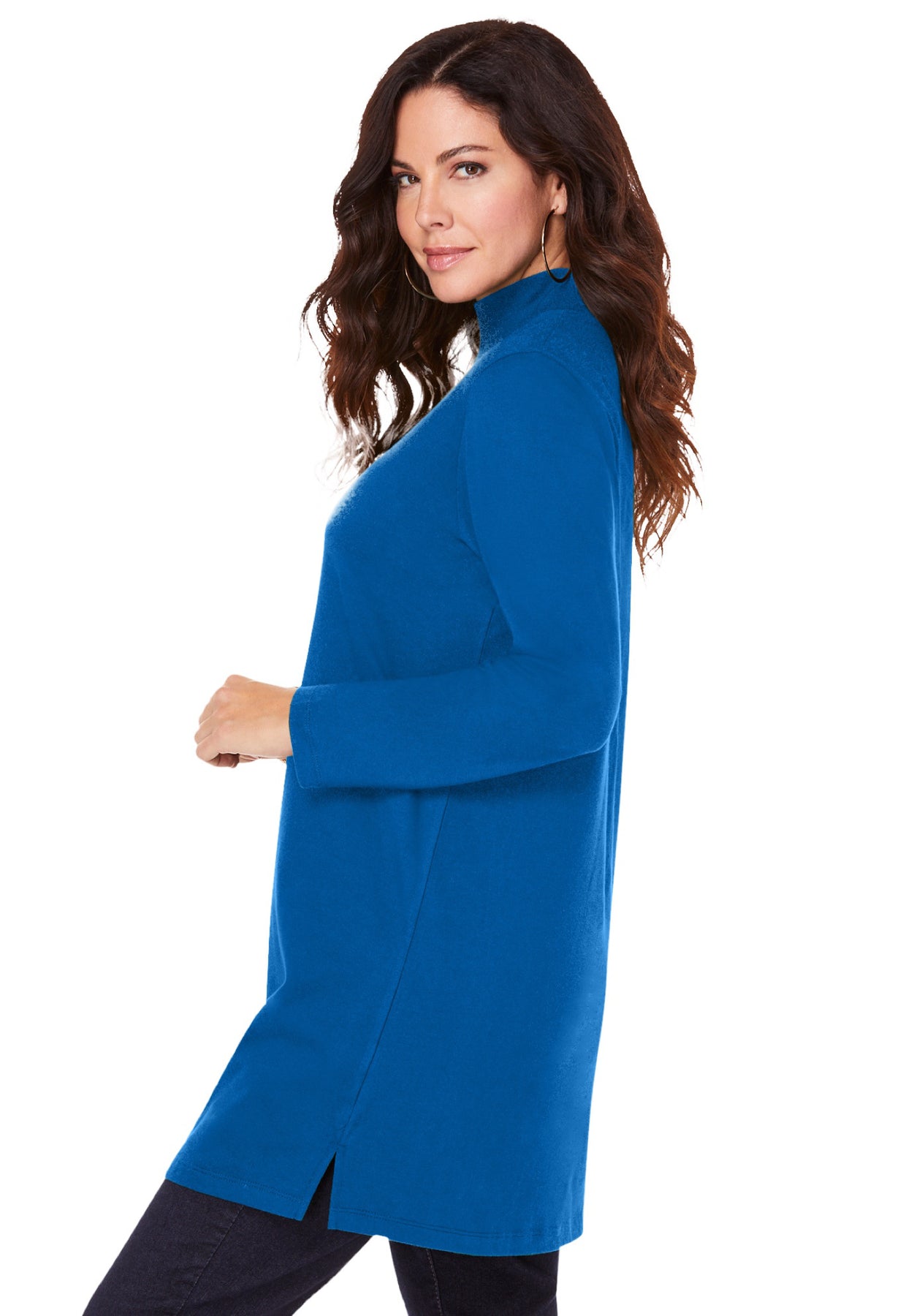 This standout look is polished and stylish, with an A-line shape and side slits for a better fit. The mockneck and longer length give you just a bit more coverage for a fit you feel comfortable in.