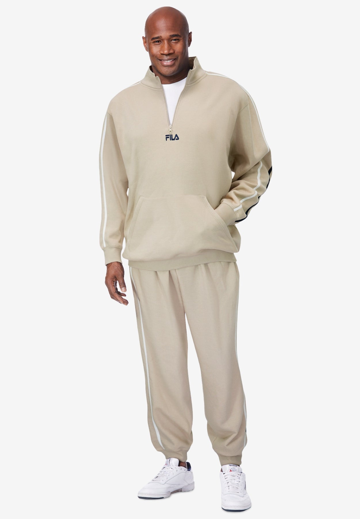 This is more than an easy-going FILA® tracksuit, it's a jacket and pant with unlimited big and tall options. The FILA® Fleece 1/4 Zip Tracksuit has a p jacket features a quarter zip front for versatility and a relaxed fit that's easy to layer with any big and tall shirt. The elastic waist pants have an adjustable drawstring and bottom elastic cuffs. Wear the jacket and pants together or mix and match with your other FILA® shirts, sweatshirts, and pants for a head-to-toe FILA® fit.