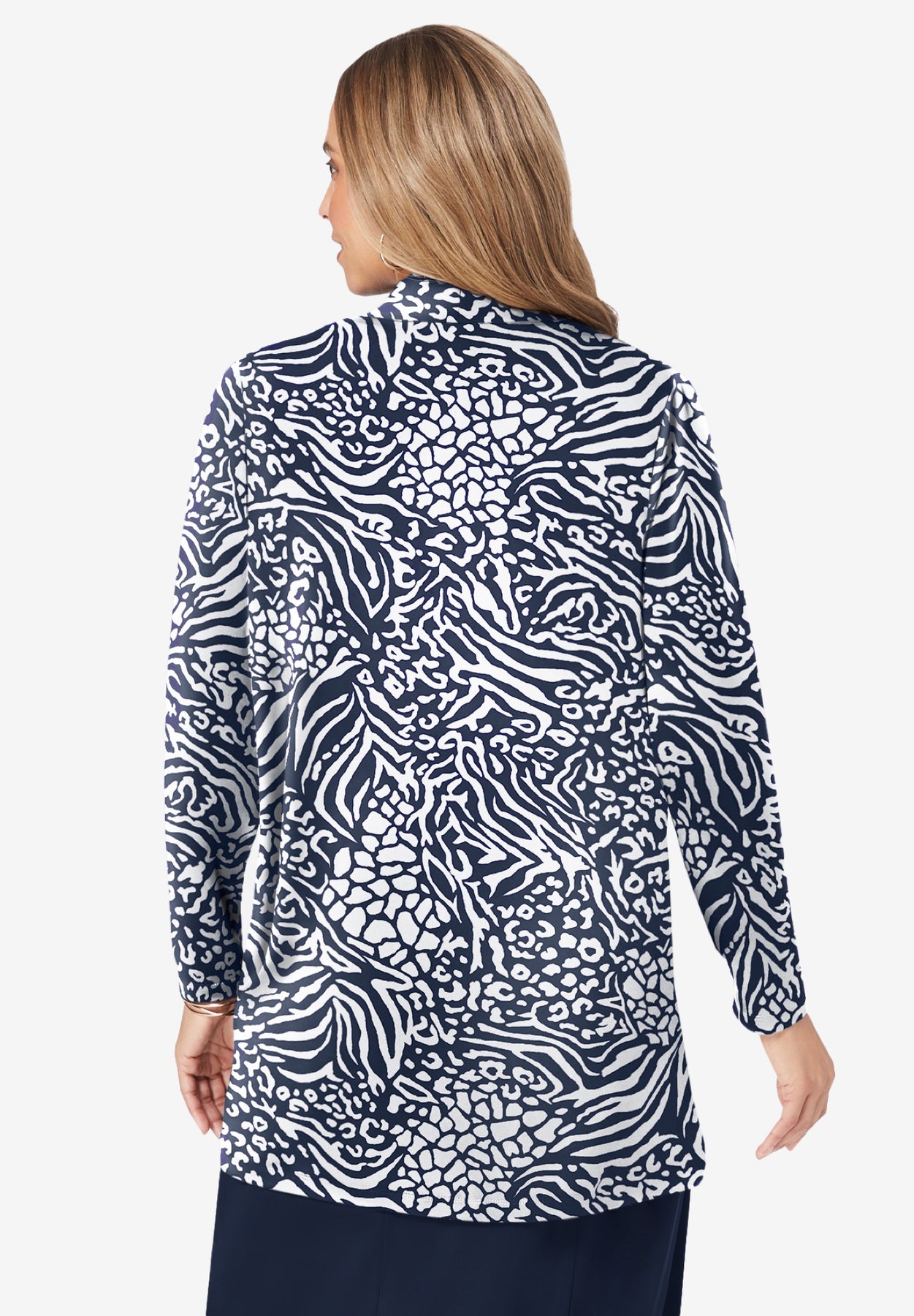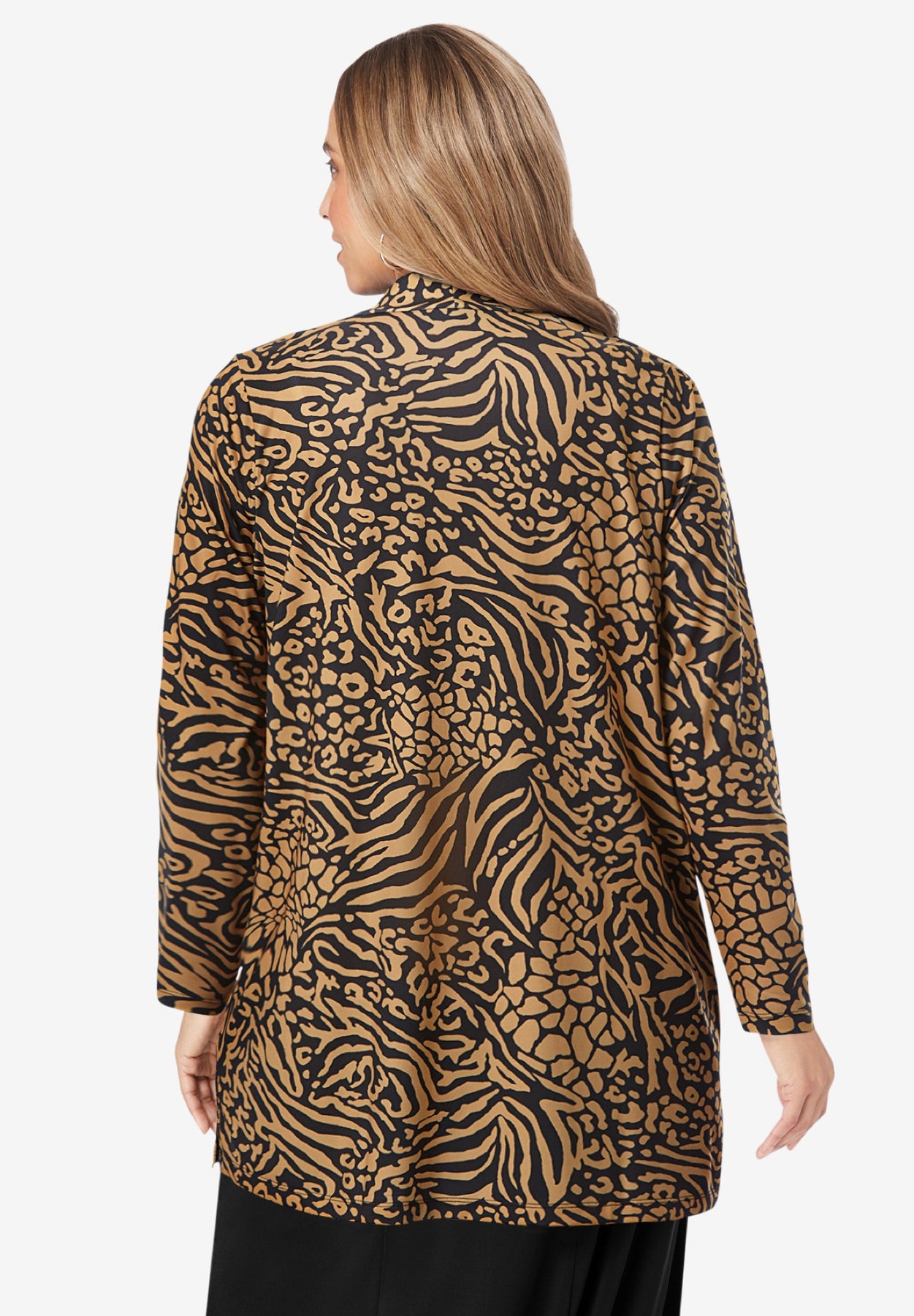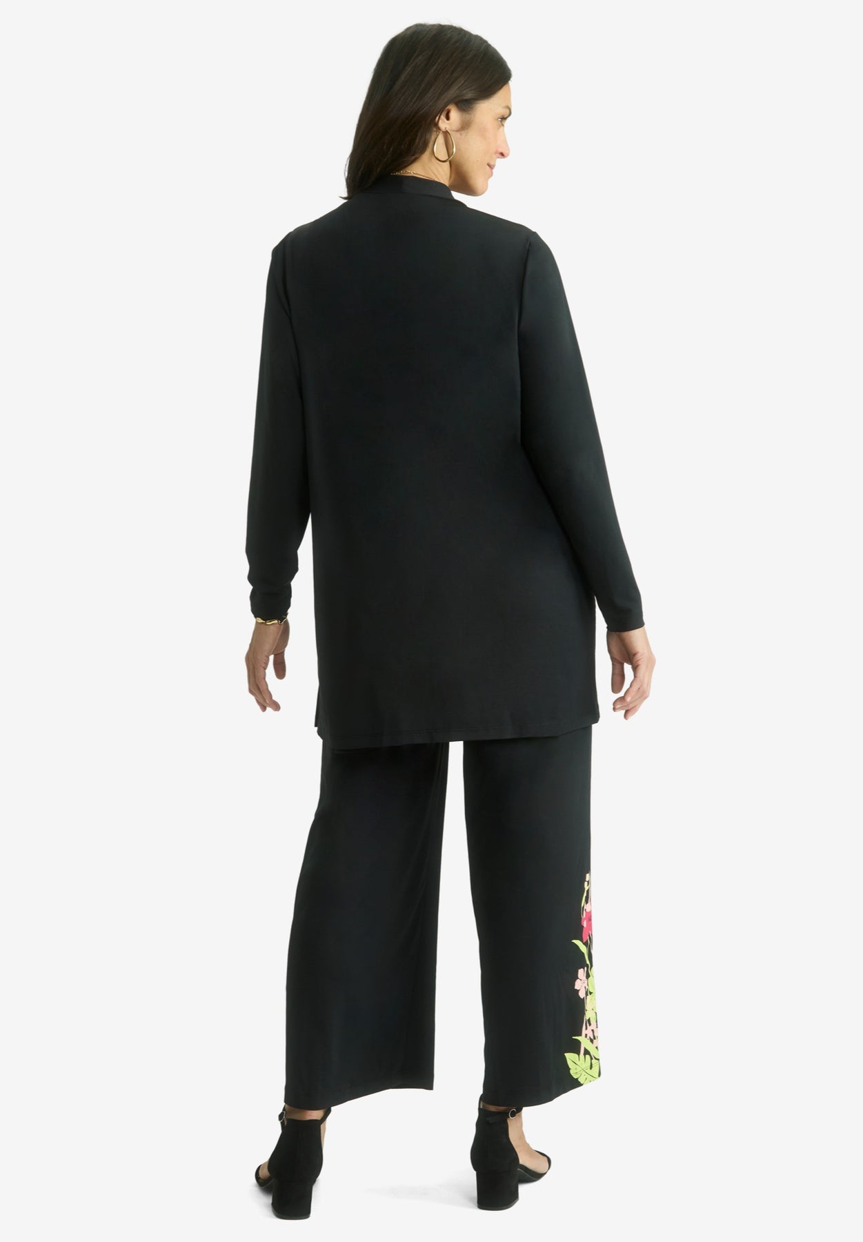 A chic layer to throw over your everyday separates, Jessica London women's plus size London Collection Stretch Knit Open Front Knit Topper adds an instant pop to any look. Features tulip sleeves and a side slit. The stretch jersey knit drapes beautifully, keeps its smooth shape wash after wash, and packs without wrinkling.
