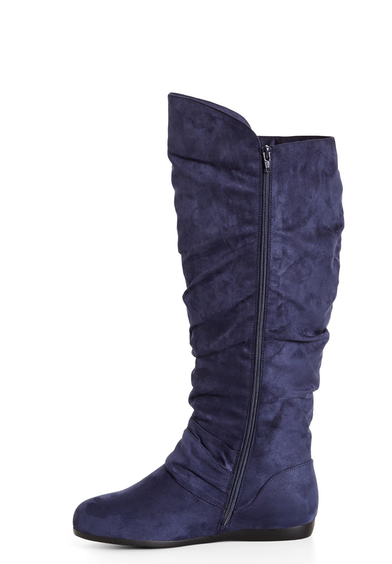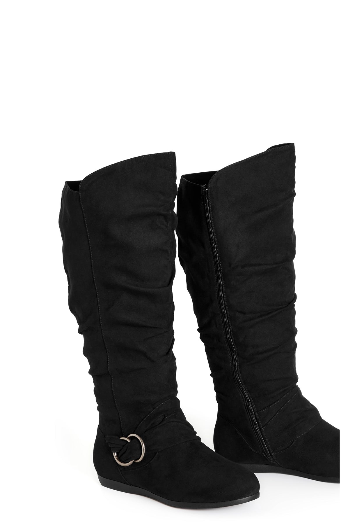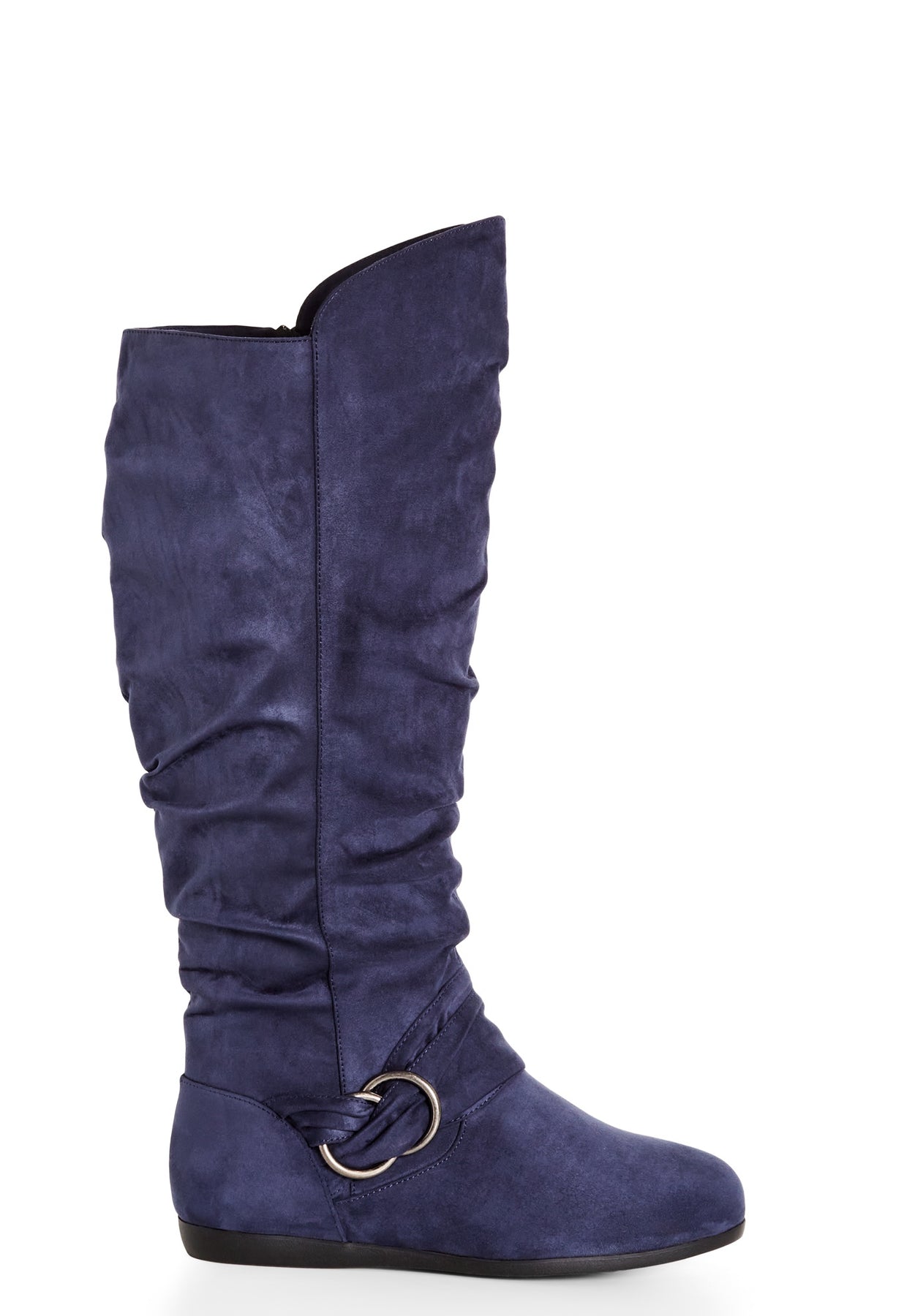 Step into sophistication with the Sasha Tall Boot. Their round toe silhouette guarantees comfort, while the scrunch detail and faux-suede fabrication exude luxury. The side zip closure ensures easy wear, and the comfortable sole lets you strut your stuff all day long, making these boots a stylish and practical choice.Key Features Include:- Faux leather fabrication- Gunmetal eyelets - Lace up closure- Textured paneling- Convenient heel loop- Padded ankle panel- Chunky styleEmbrace bohemian style by teaming with a flowy maxi dress or skirt.