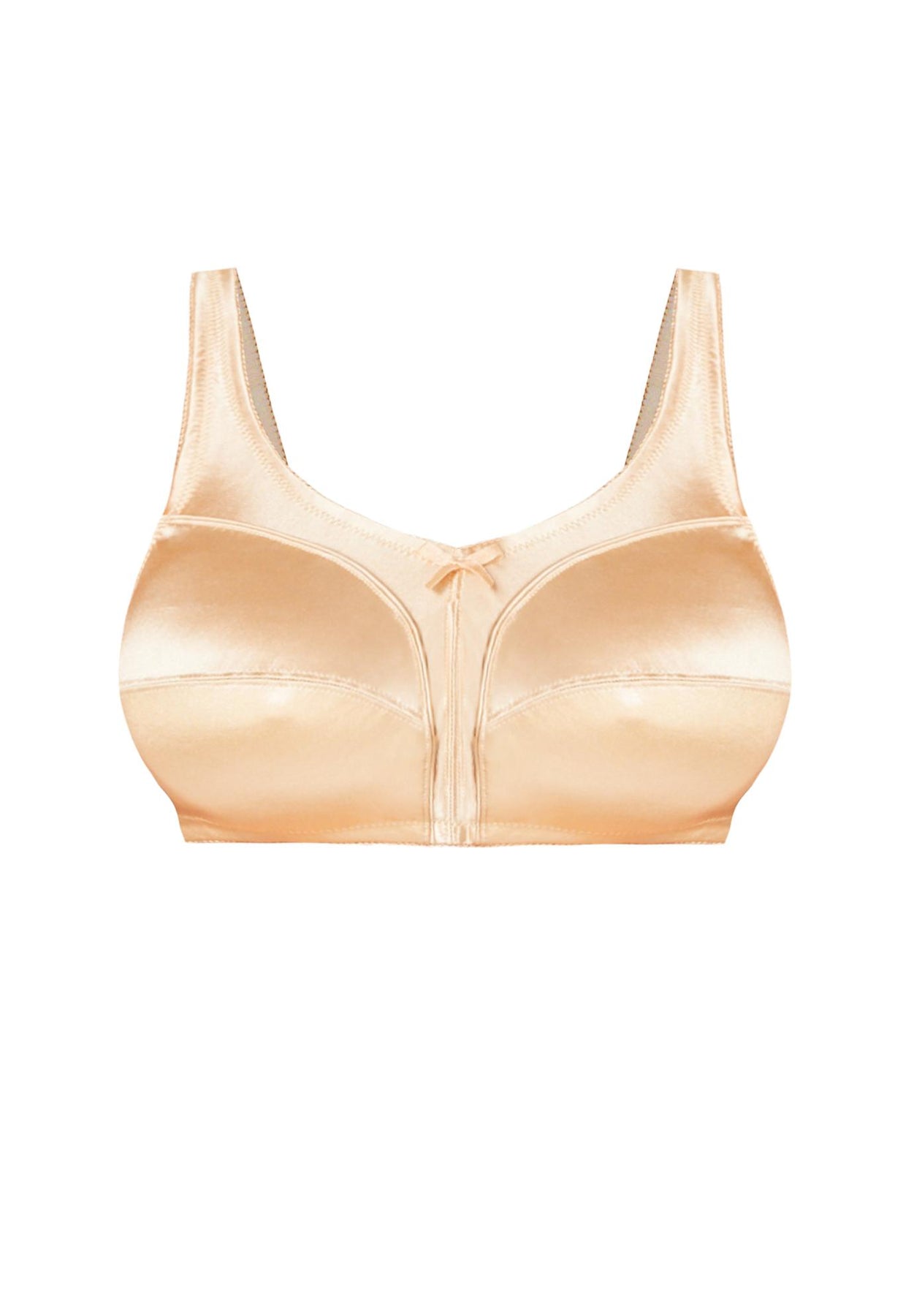 This incredibly comfortable wireless bra provides full coverage in a silky-smooth satin that lays smooth under clothing. Double-lined bottom cups provide a natural shape and light support while wide adjustable straps rest comfortably on the shoulders.