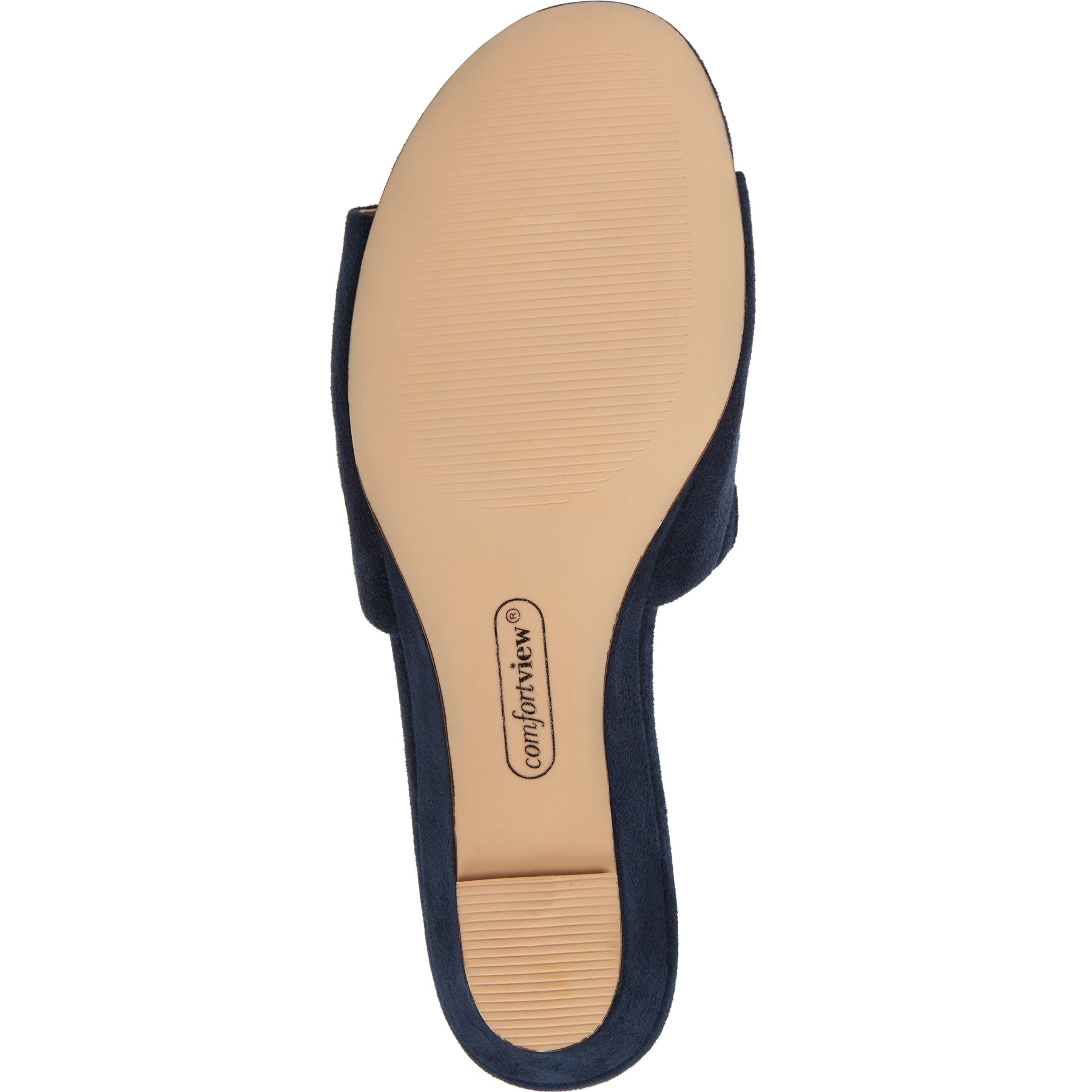 Modern low-wedge mules available in full and half sizes 7-11, 12 M, W, WW