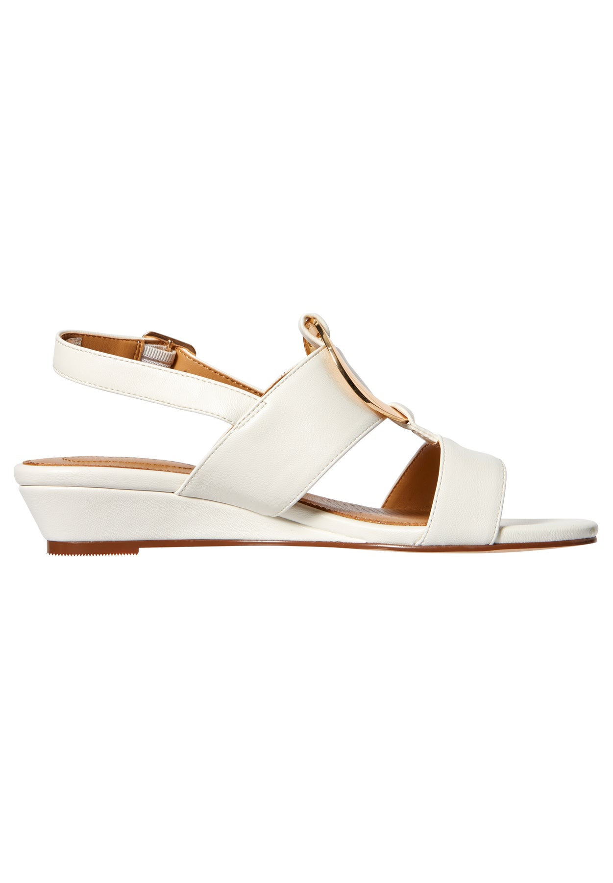 Leather-like wedge sandals available in full and half sizes 7-11, 12 M, W, WW