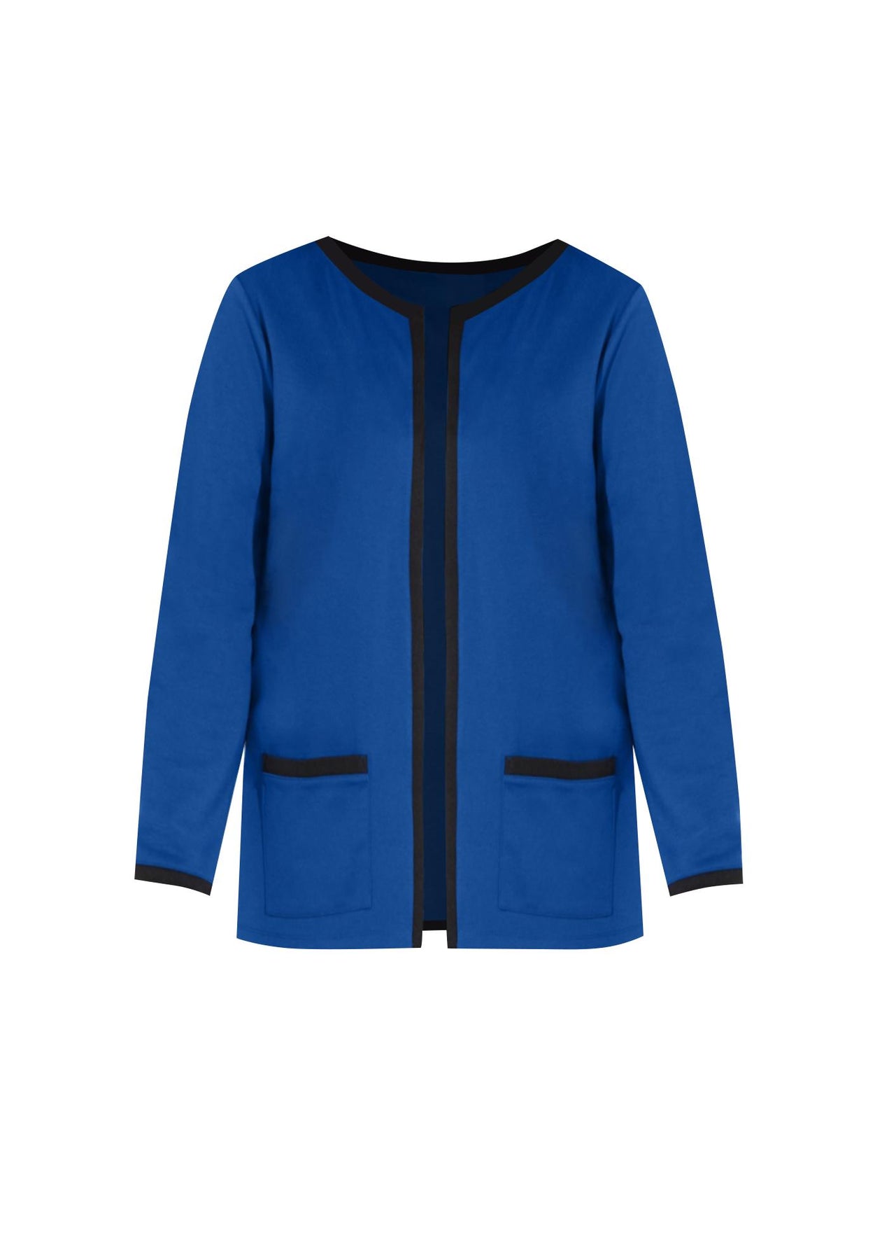 FIT: Relaxed silhouette, Hook-and-Eye closure at neck, long sleeves, straight hem. Contrast piping detail. Patch pockets.
