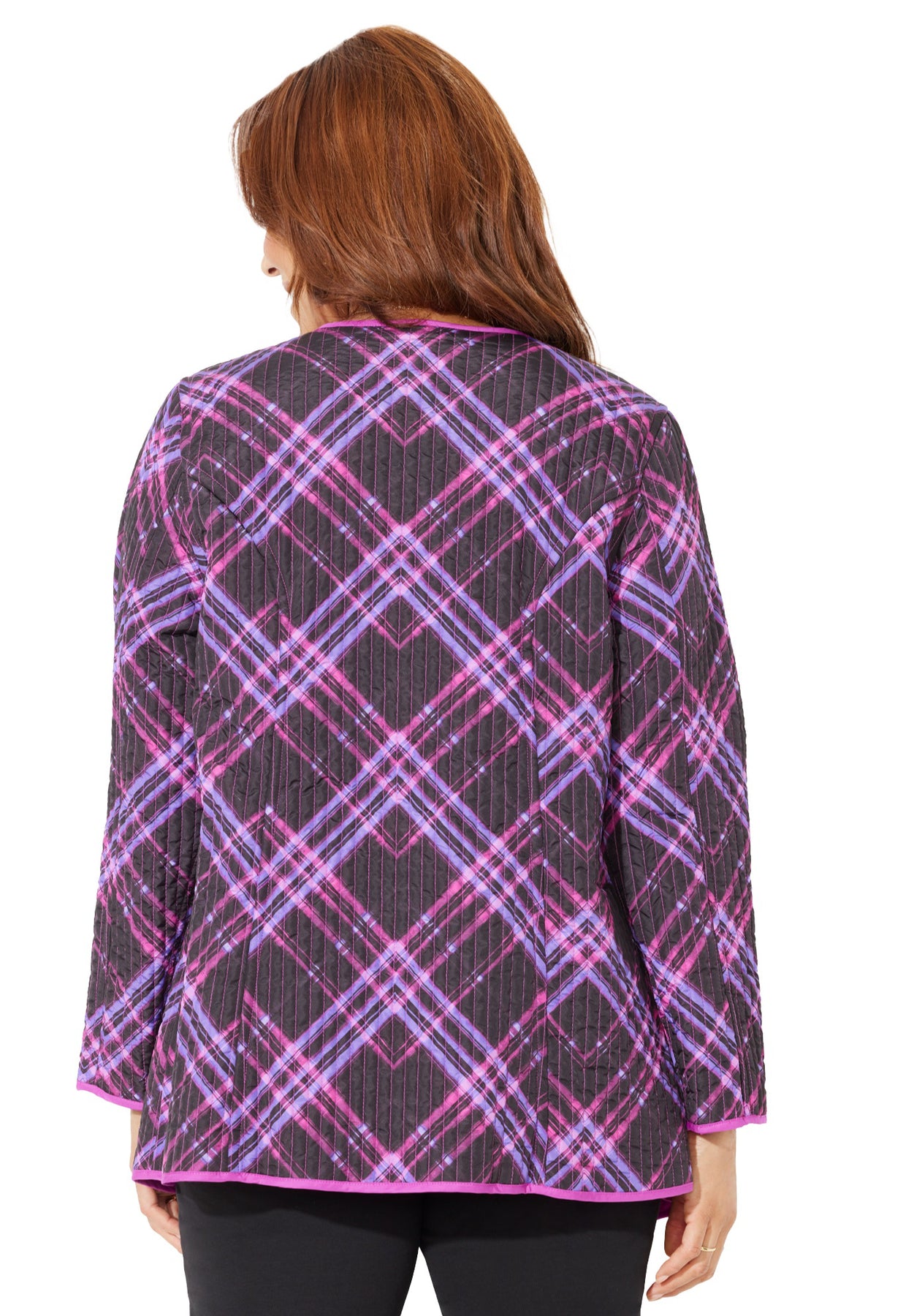A Catherines favorite returns. We've redesigned your most-loved quilted jacket in a reversible style to give you two looks in one. Classic leopard print on one side, fun dotted print on the reverse.