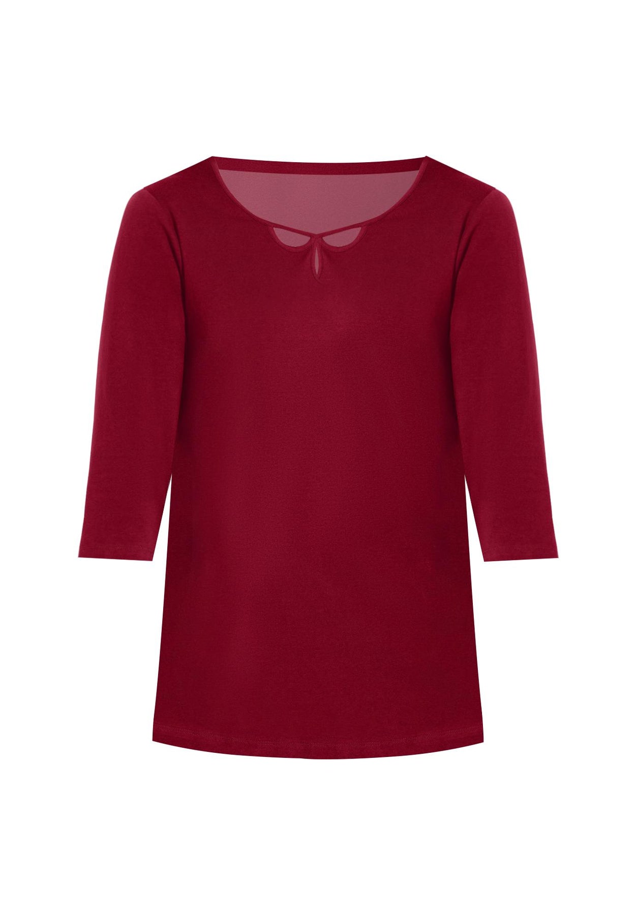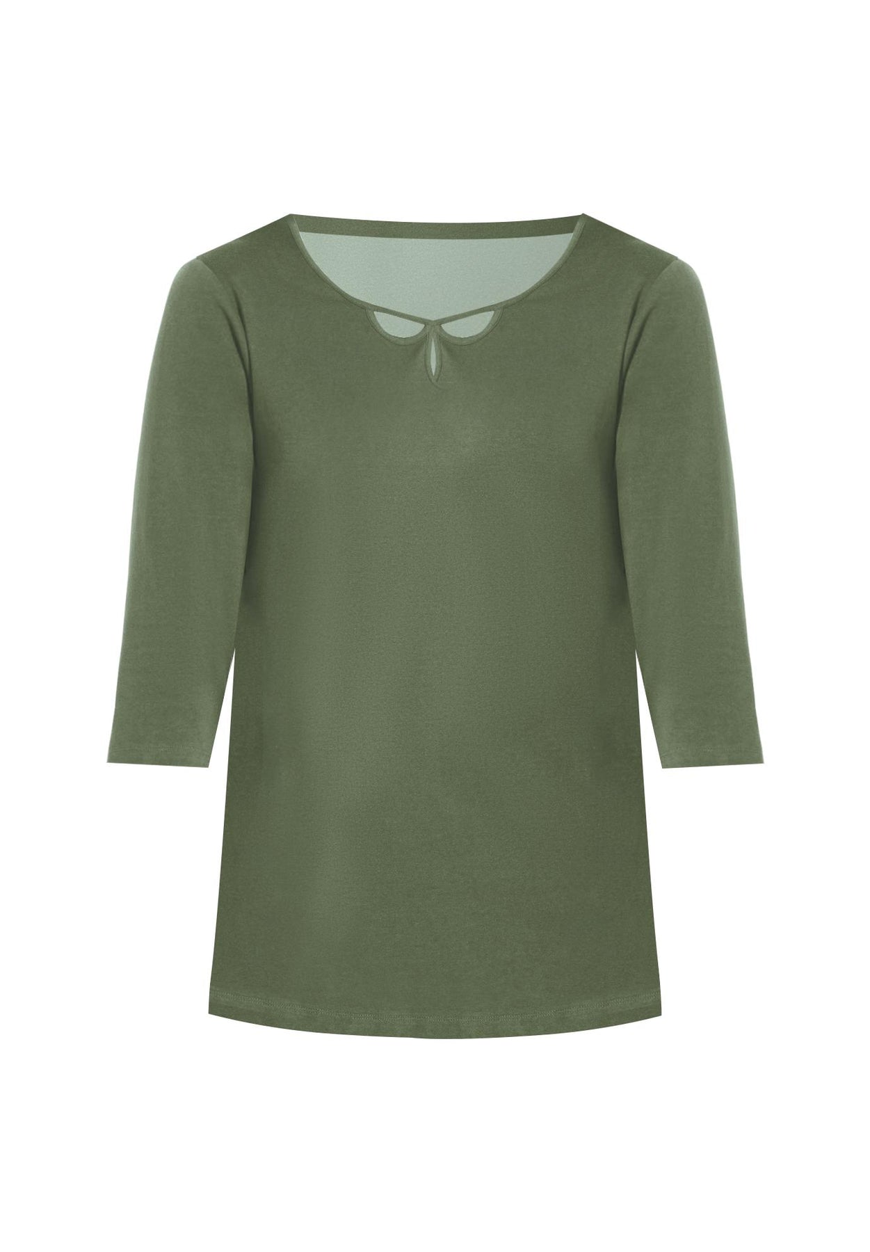 FIT: Relaxed and easy silhouette. Triple keyhole neckline. 3/4 sleeves.