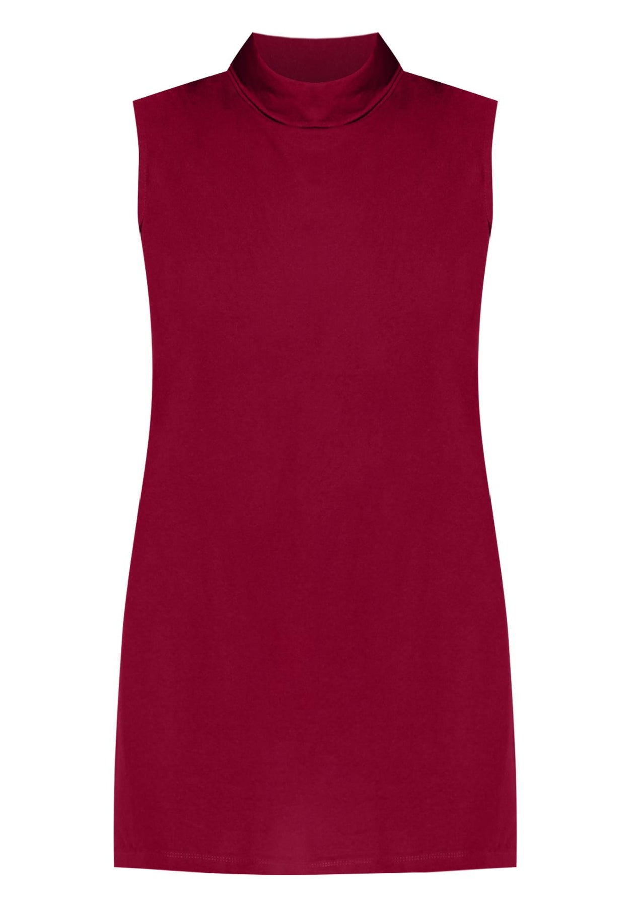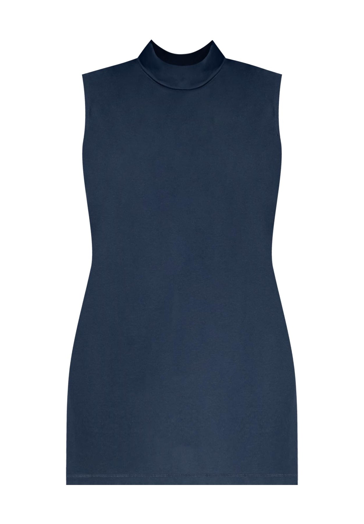 FIT: Relaxed and easy sleevelss shape with a comfortable foldover turtleneck.
