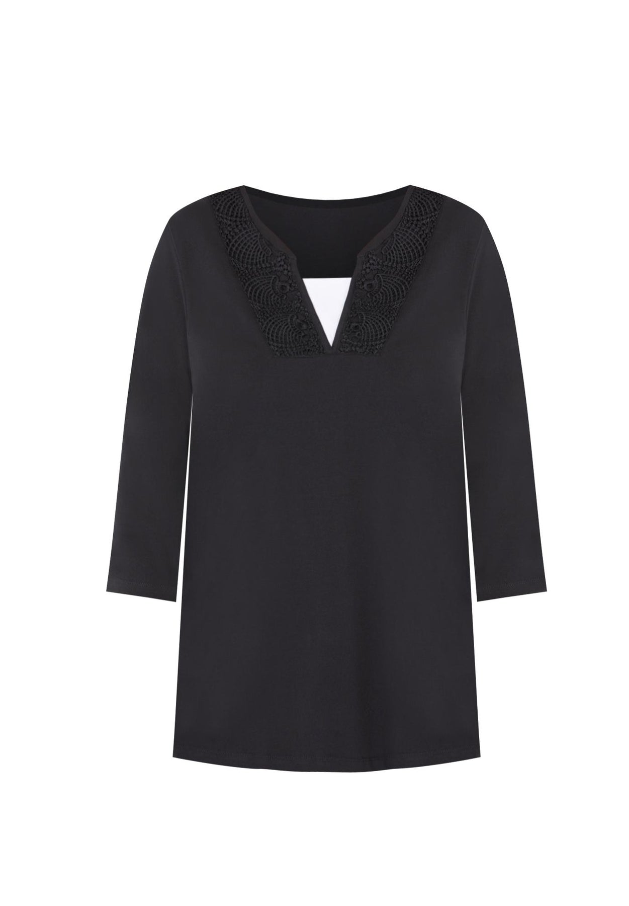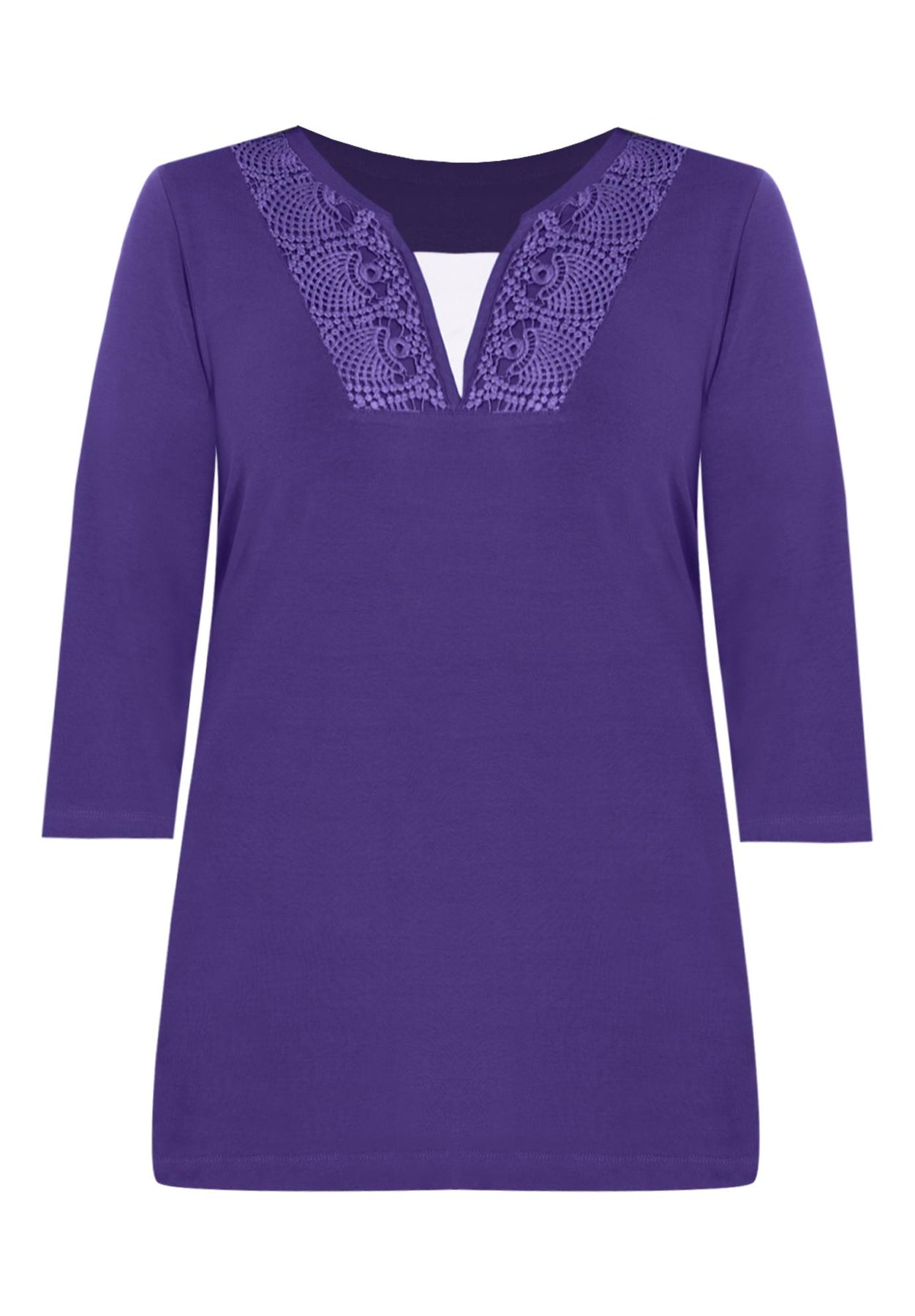 A lace overlay at the scoop neckline combines with a flattering inset to create a layered look (aka duet). Soft and feminine, it's the perfect tee to wear anytime you want to feel a little special.