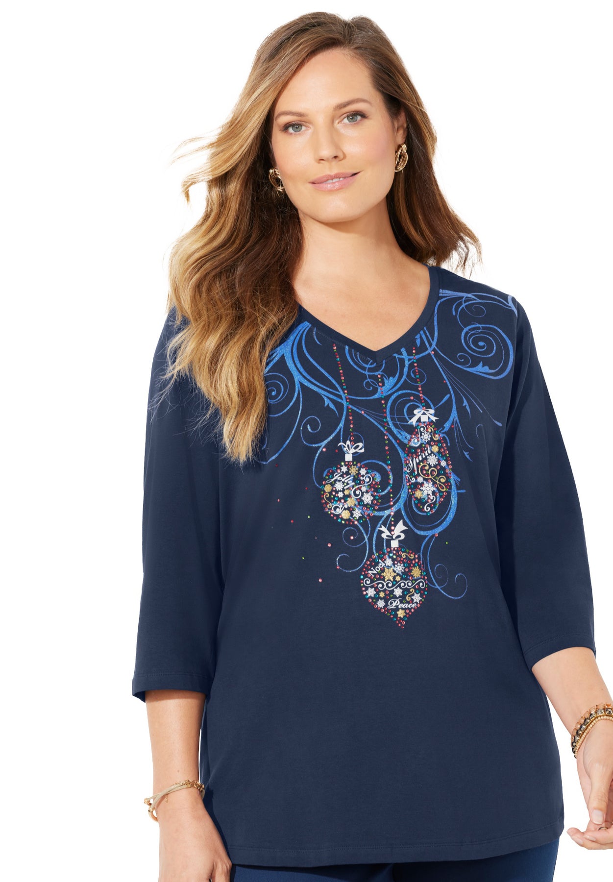 Get ready to celebrate! These are the Catherines classics that never fail to bring joy to your wardrobe. Soft and comfortable, with whimsical prints to brighten your outlook and outift. Wear them solo or under a jacket or vest, and pair with soft knit pants or jeans.