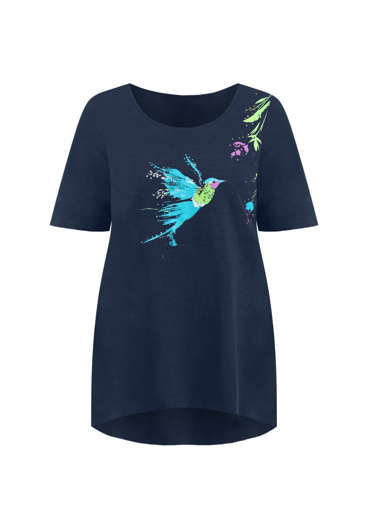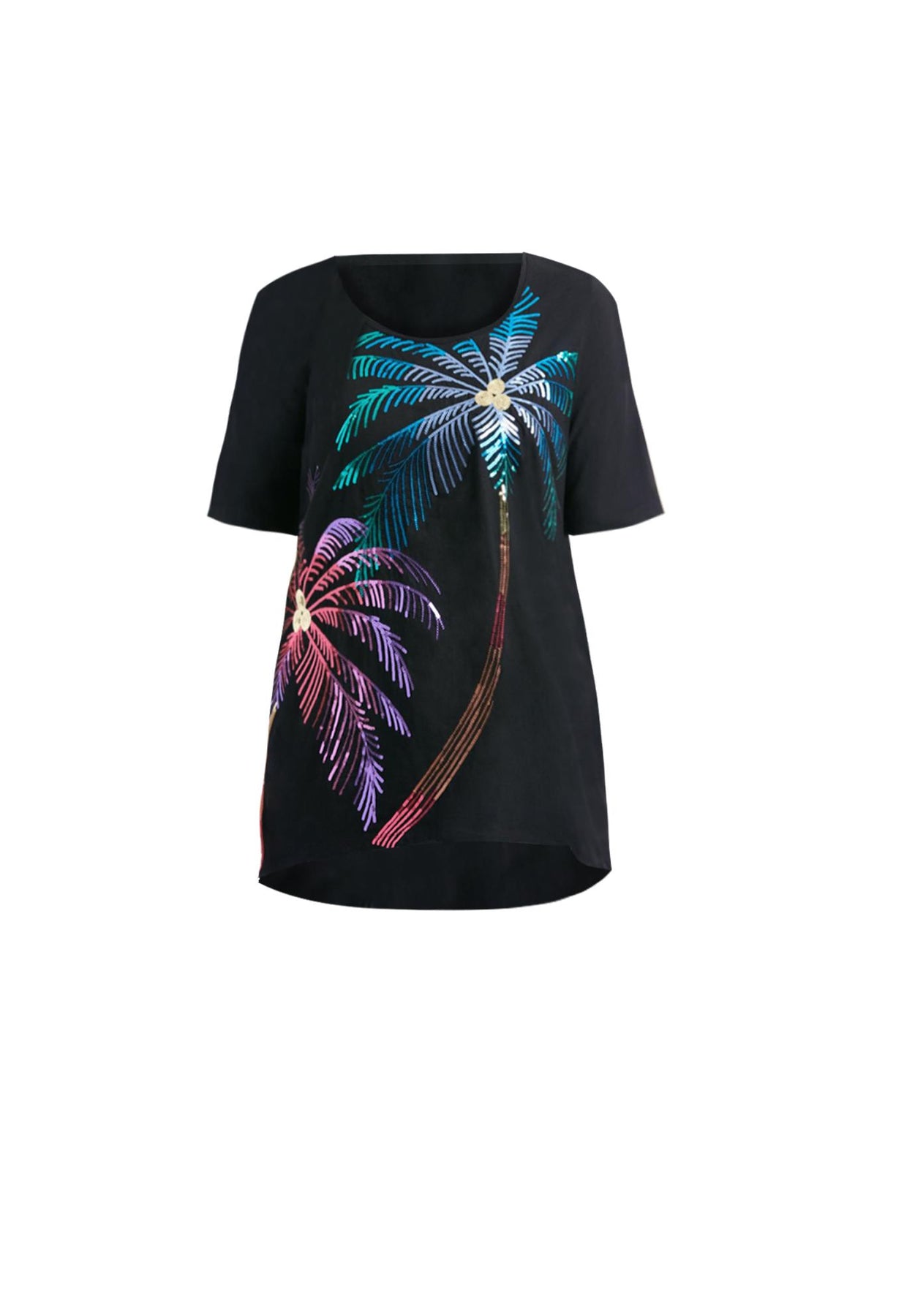 A soft cotton tee to wear alone, or as a fashion layer under cardigans and jackets, anytime you want to brighten your day. Crafted from pure cotton with a slub-knit texture for extra softness. Sparkling sequin graphic. Flattering two-point hem.