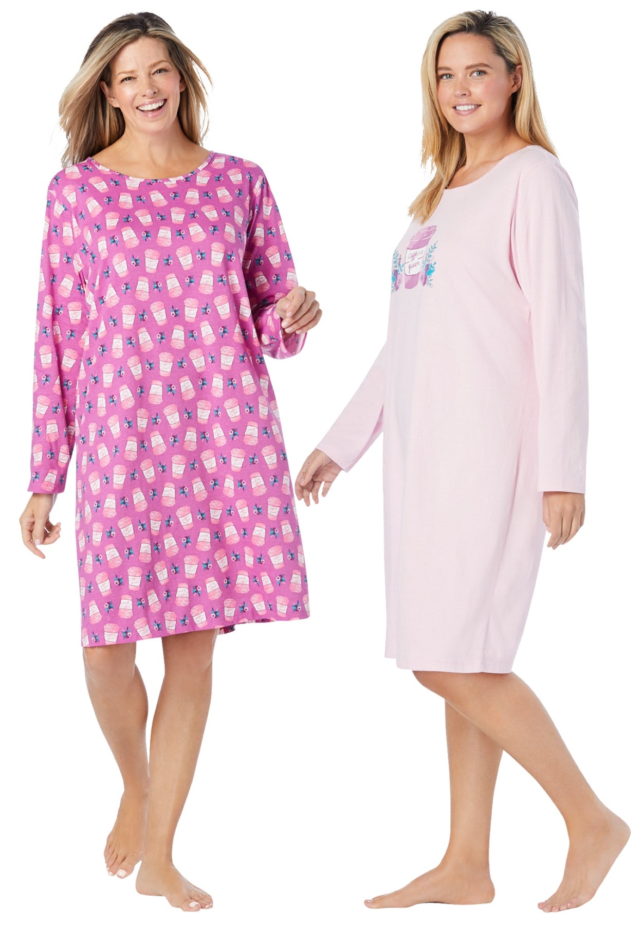 The fit and feel of this cotton jersey sleepshirt is so good, we've made it in a two pack. Fall in love with the easy, relaxed shape that's so comfy while you sleep. A knee length and long sleeves give just the right amount of coverage, and the cute graphics come in two different styles so you can switch it up whenever you please. Sleep tight.