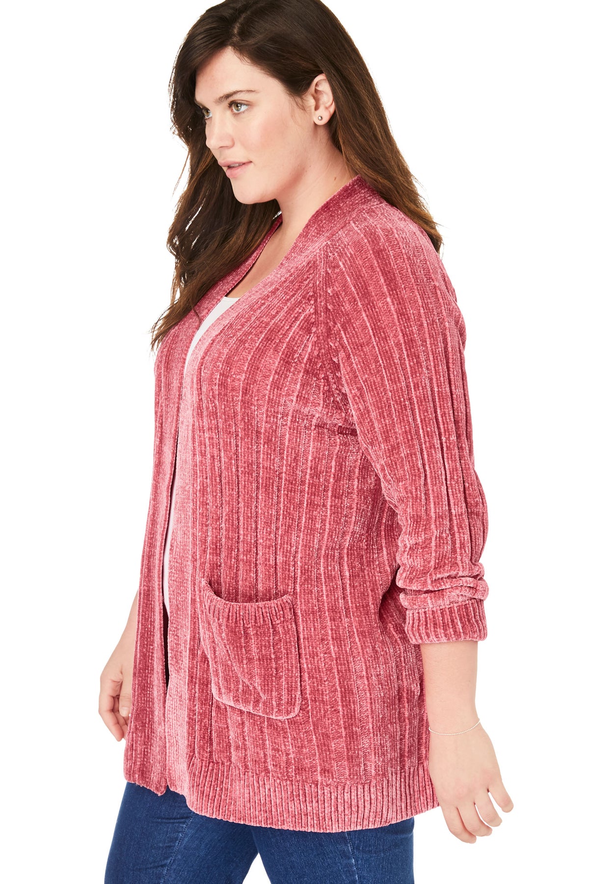 An easy layer, this great everyday cardi is made in soft chenille to add warmth and style to your favorite tees and tops. A ribbed texture adds even more plushness that will keep you extra cozy.