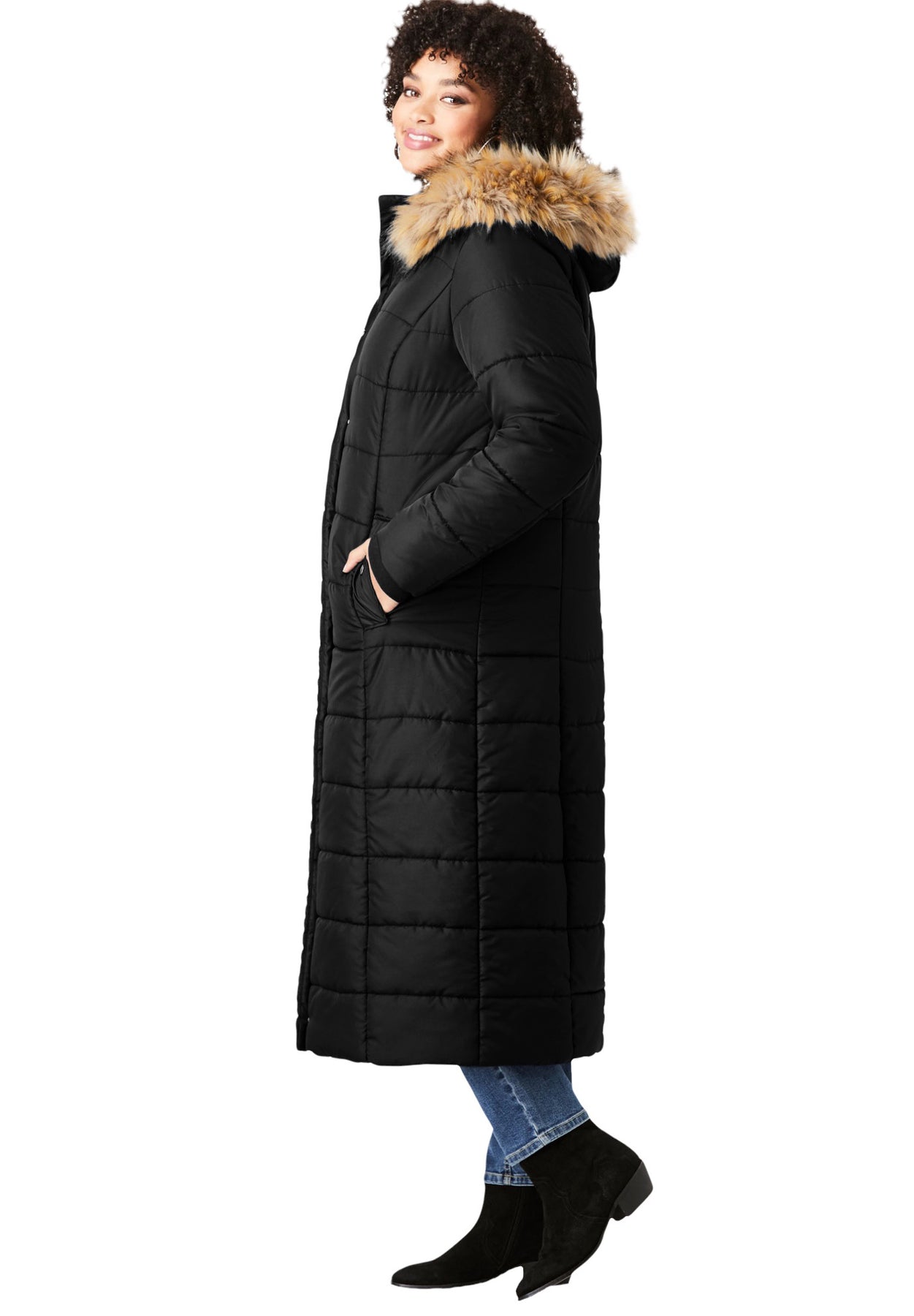 Plus Size Maxi Length Puffer Coat