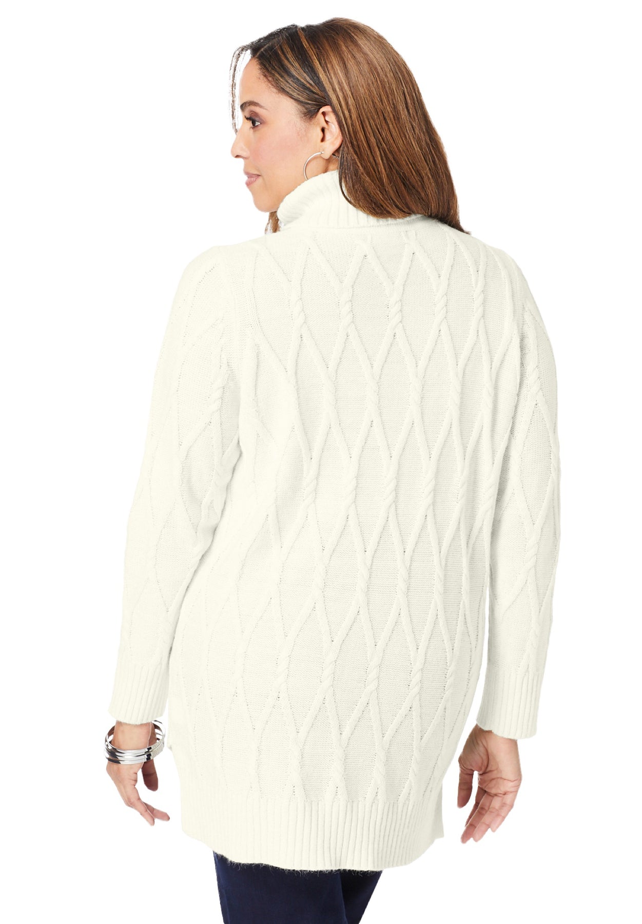 The piece to pick when you want to add a little something extra to your knitwear collection. This turtleneck with a classic cable-knit design is finished off with a high-low hem that lends an effortlessly chic look.