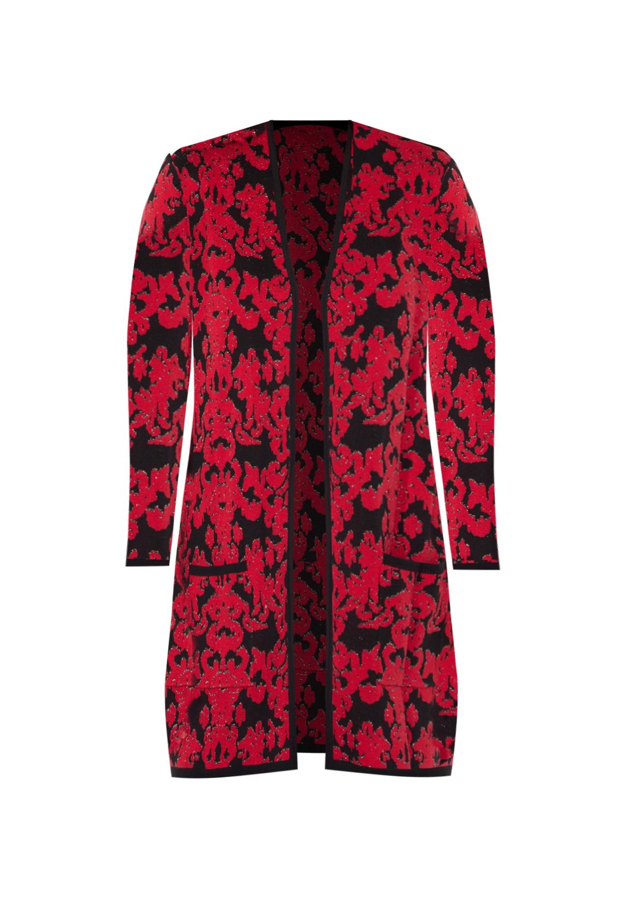 FIT: Long, duster-length silhouette with rib trim at cuffs and hem. Open front. Long sleeves. Front patch pockets.