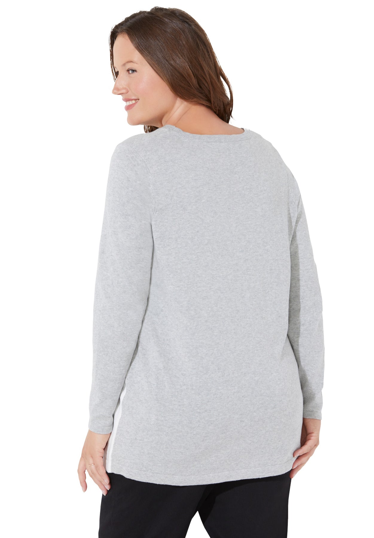 FIT: Relaxed and feminine pullover style with scoop neckline and long sleeves.