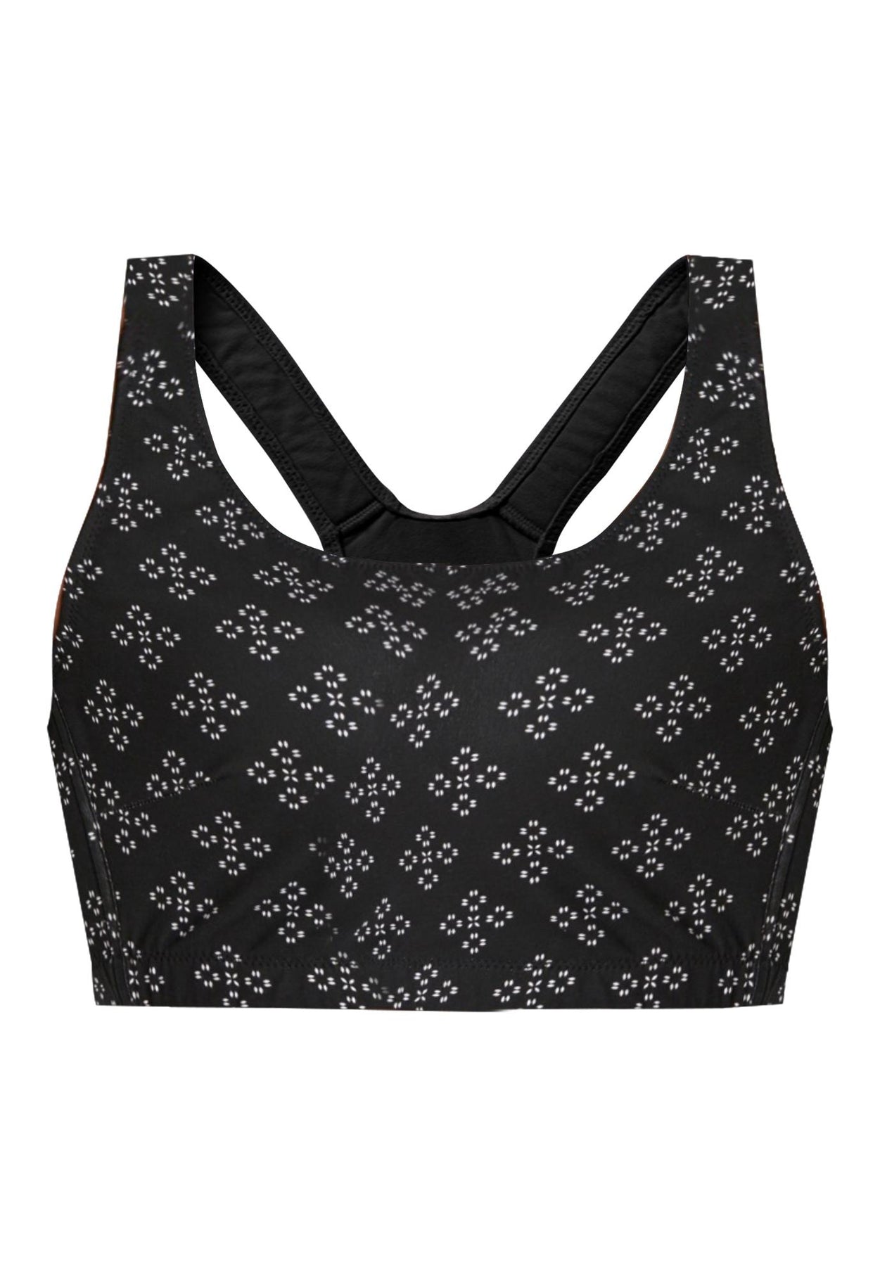 - Pullover design with wide straps and high racerback.