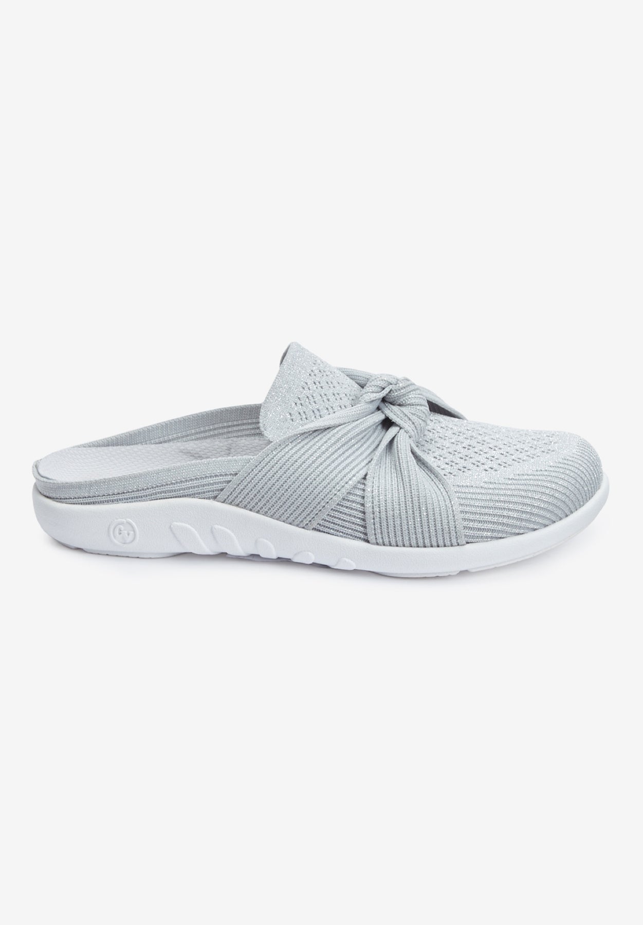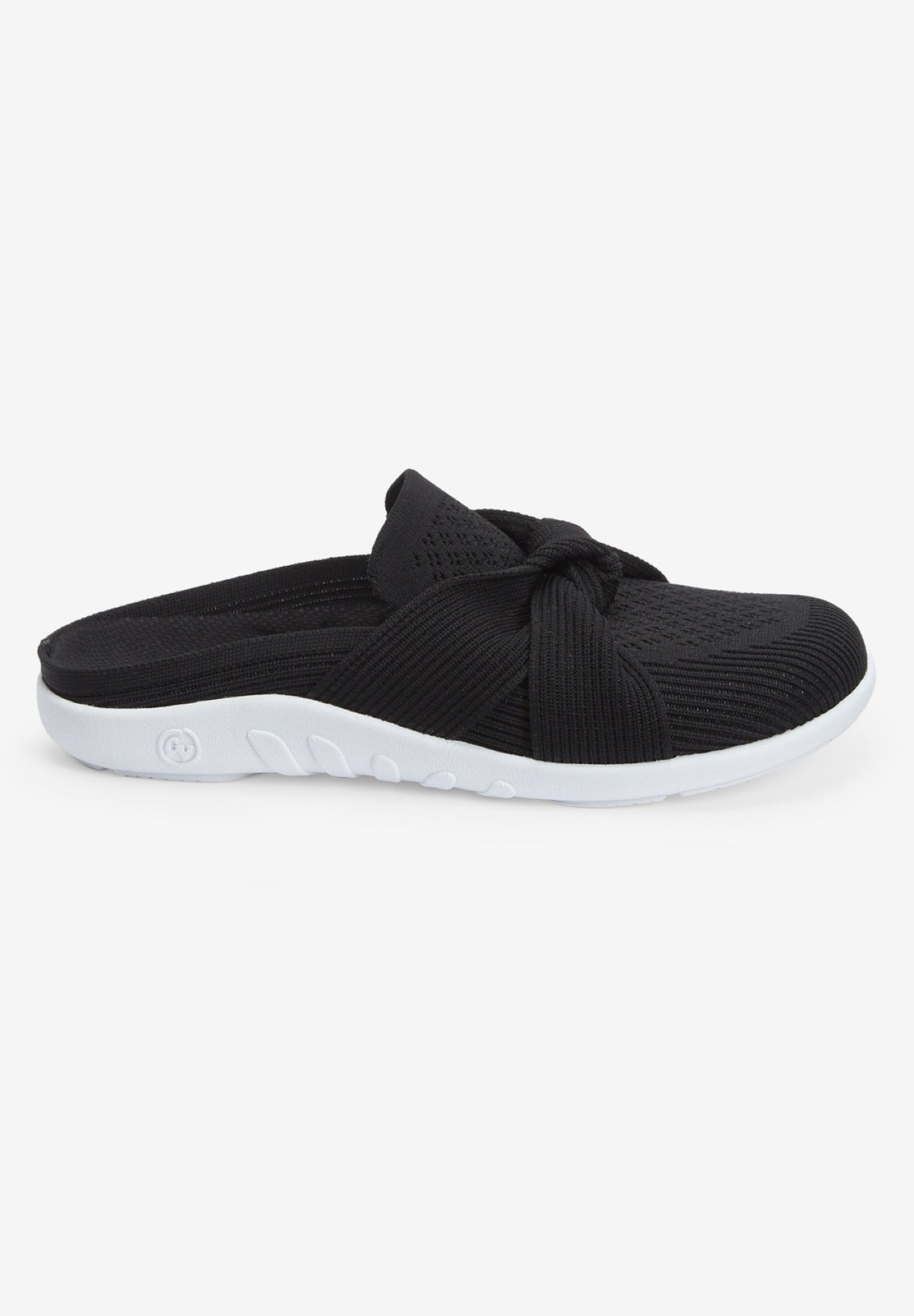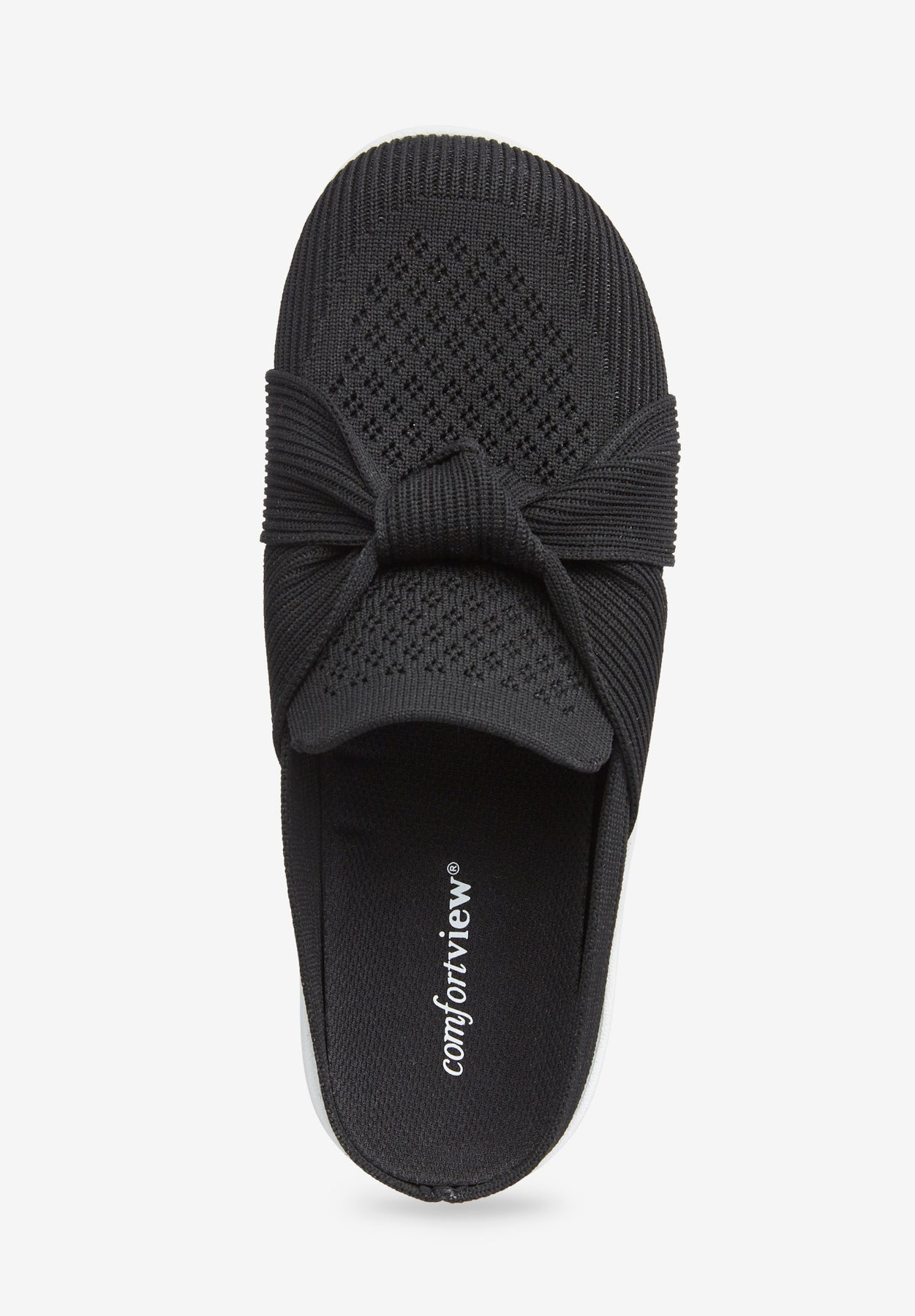 Slip into style with this timeless stretch knit mule complete with arch support insole and skid-resistant outsole for comfort in every step.
