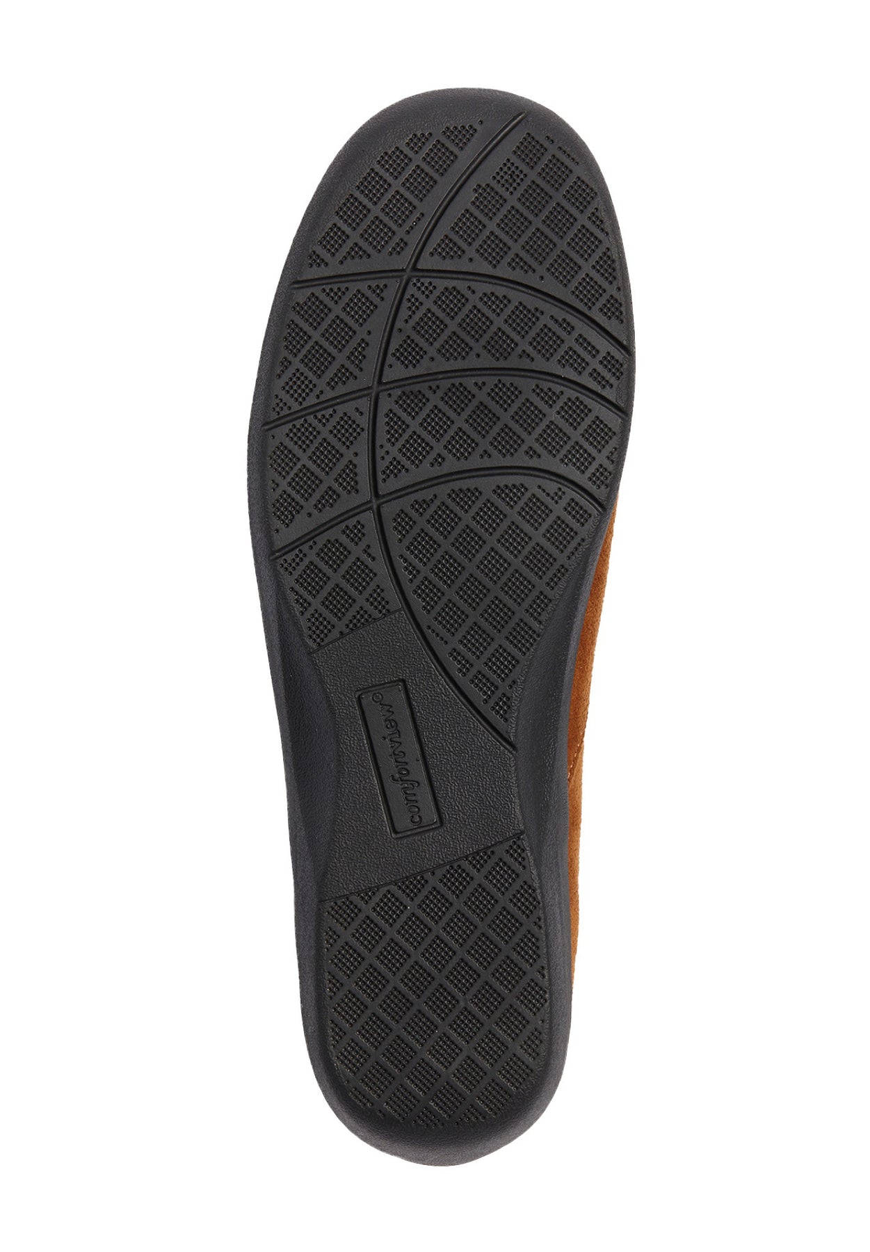 A supple suede-like upper with crisscross elastic straps refine an essential Mary Jane flat grounded by a lightweight bottom with cupped insole to stabilize heel.