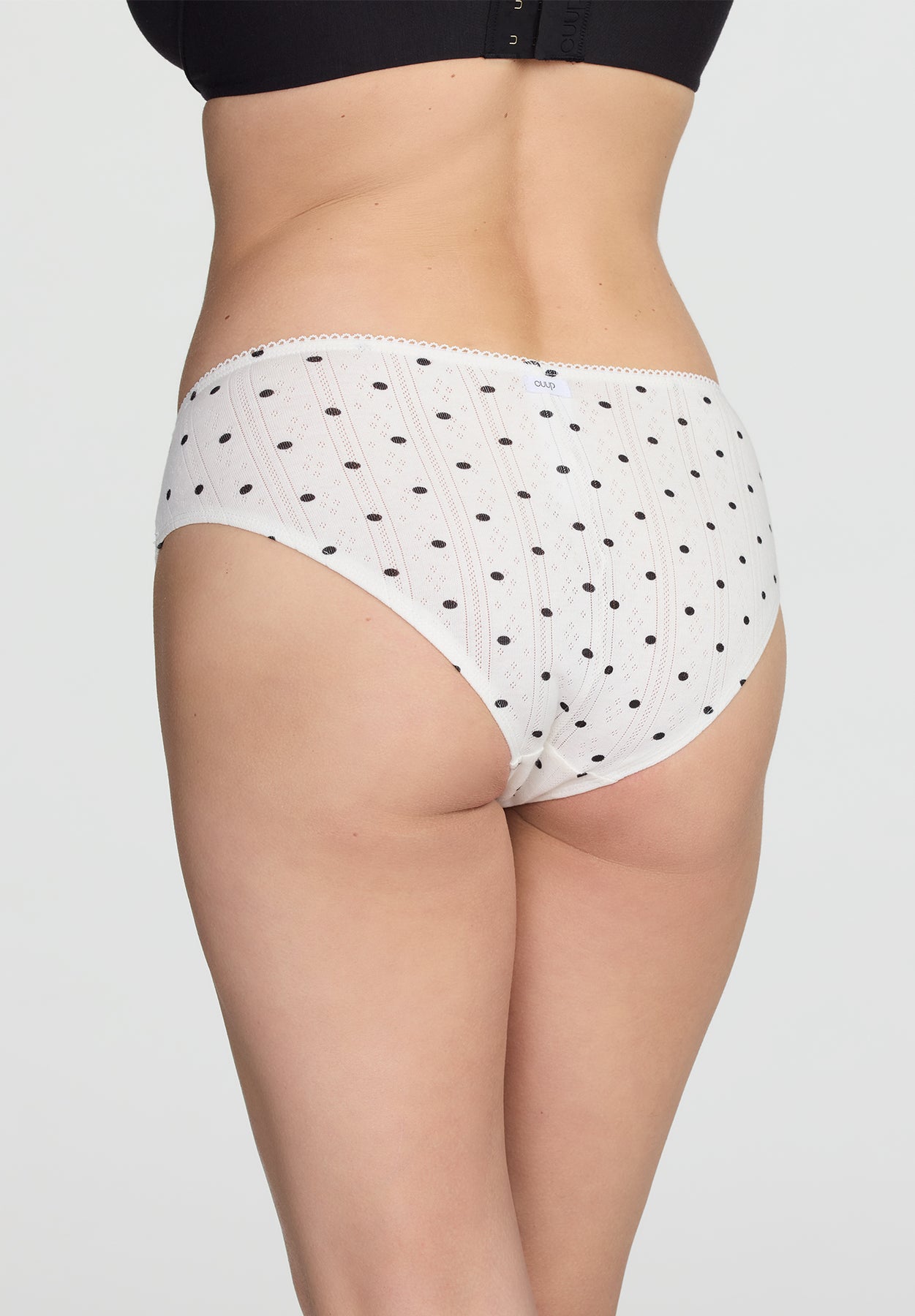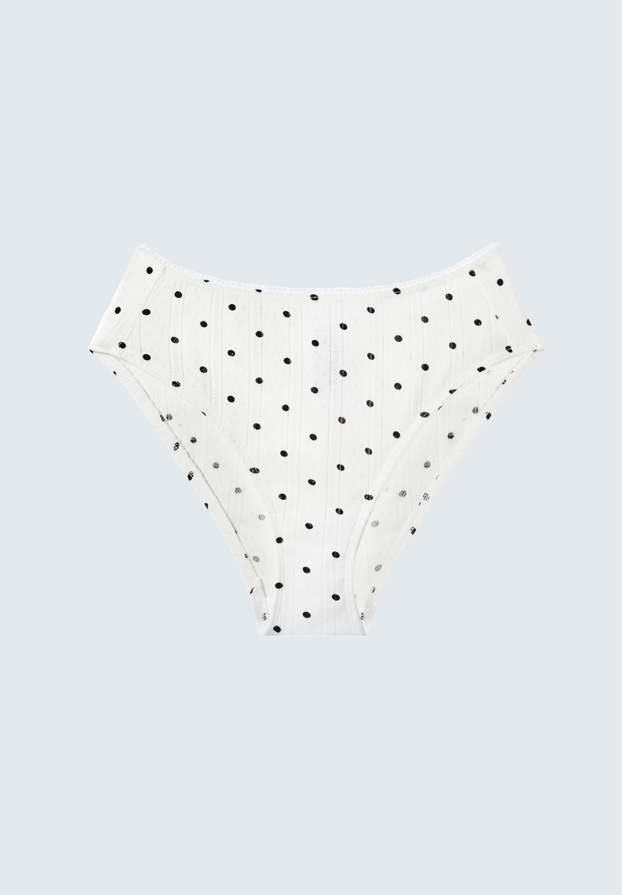 A full-coverage silhouette that comfortably sits along the waist, the Brief combines classic lines with all-day wearability. Now offered in our playfully polka-dotted Pointelle fabric.
