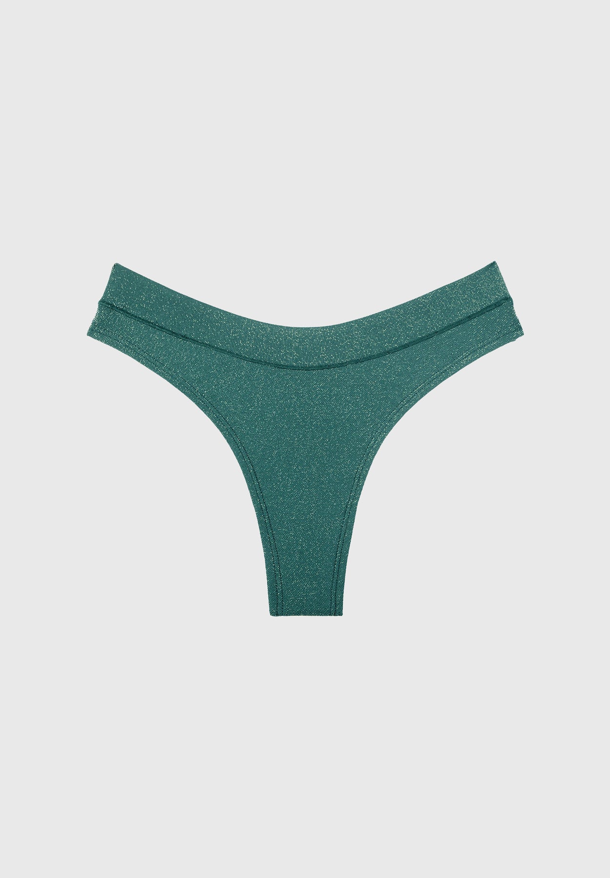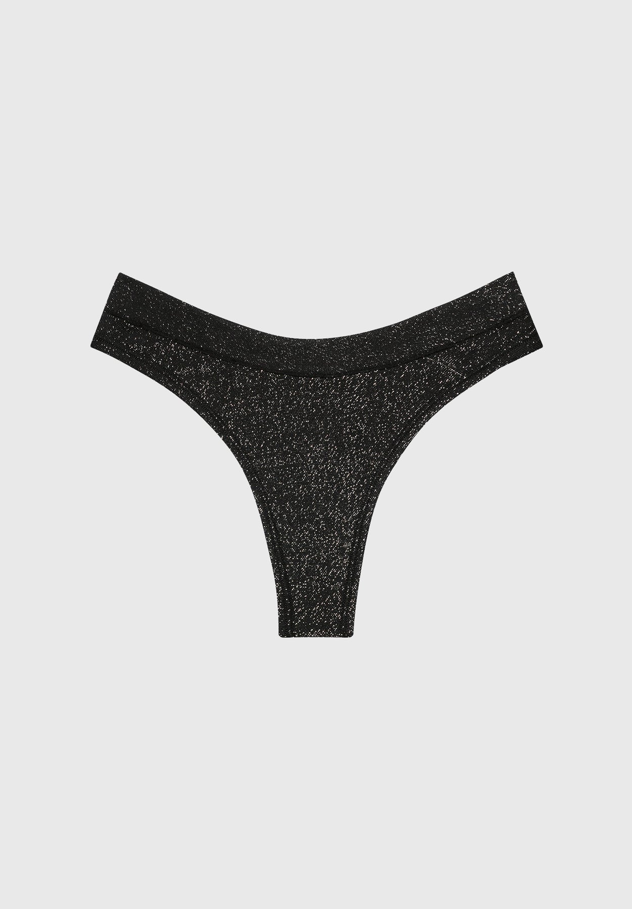 A minimal coverage, mid rise silhouette in sparkling soft Lurex. The Thong is cut with the same flattering back V shape as our Bikini.
