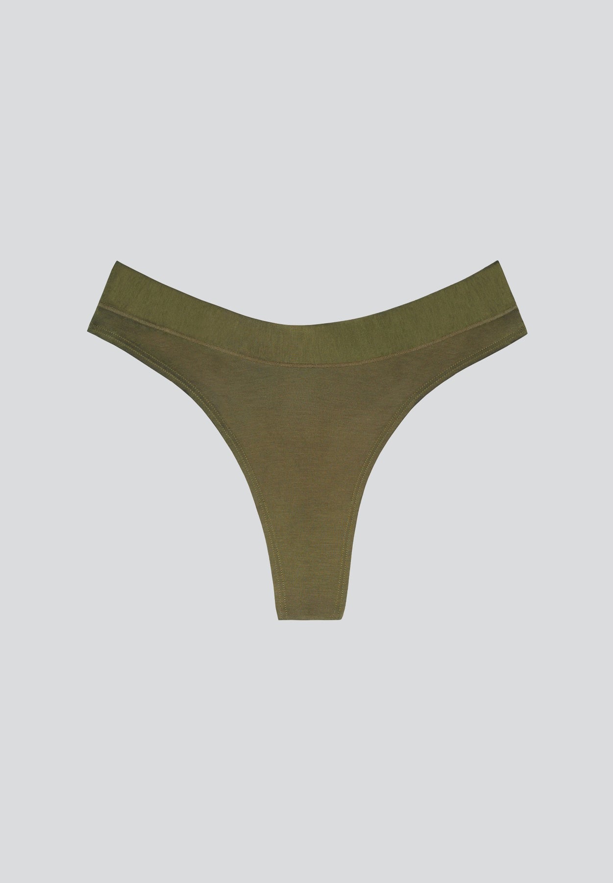 A minimal coverage, mid-rise silhouette. The Thong is cut with the same flattering back V shape as our Bikini.
