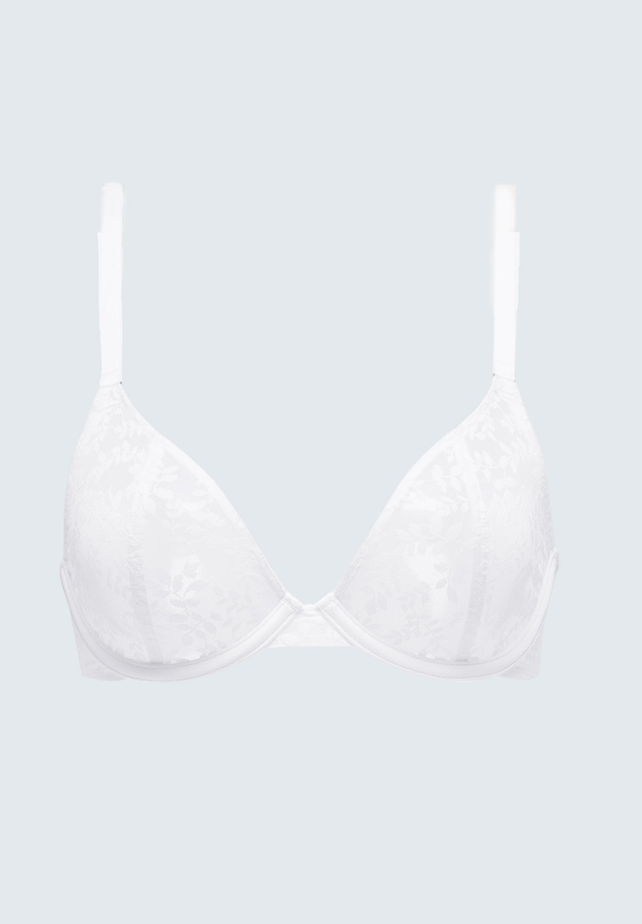 • Single layer of soft, sheer, patterned lace offers support with a lightweight, minimal feel