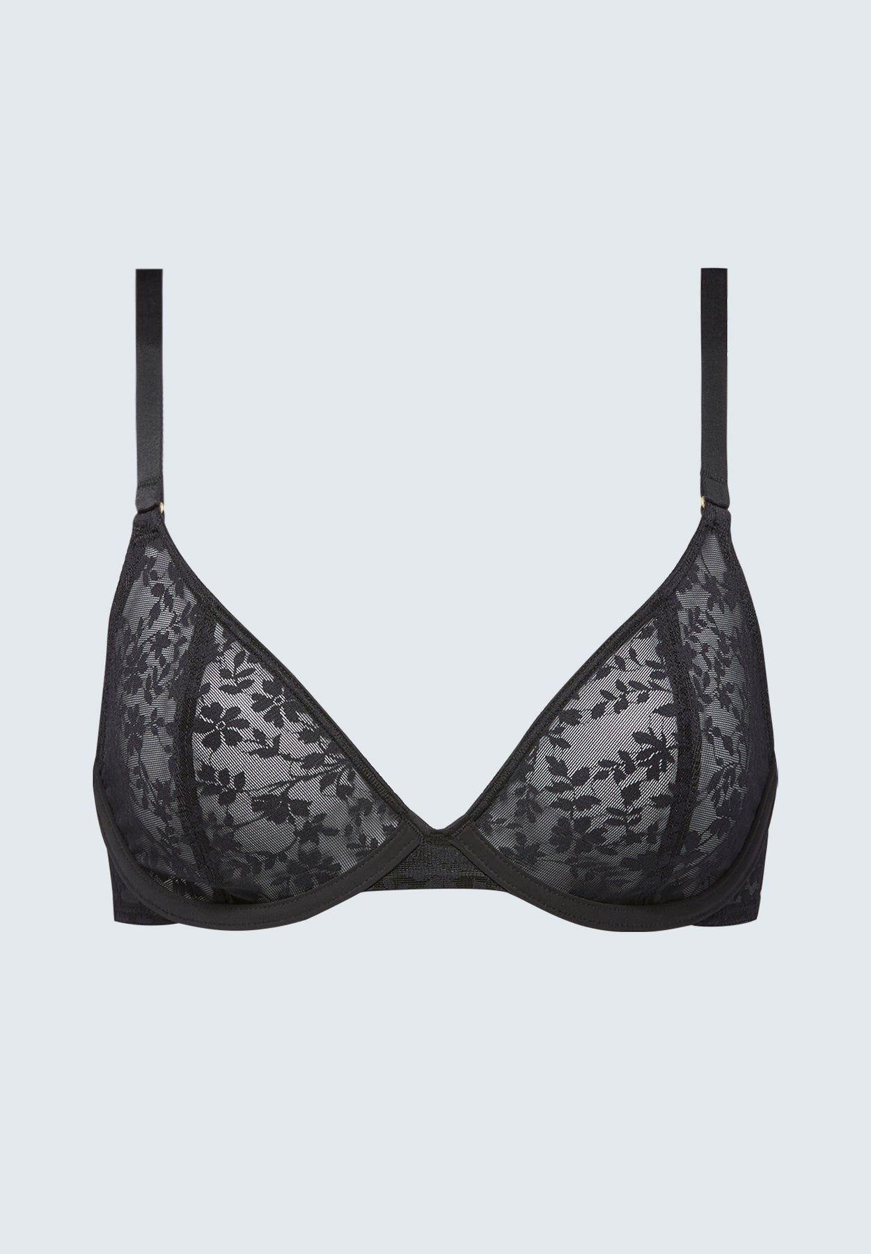 • Single layer of soft, sheer, patterned lace offers support with a lightweight, minimal feel