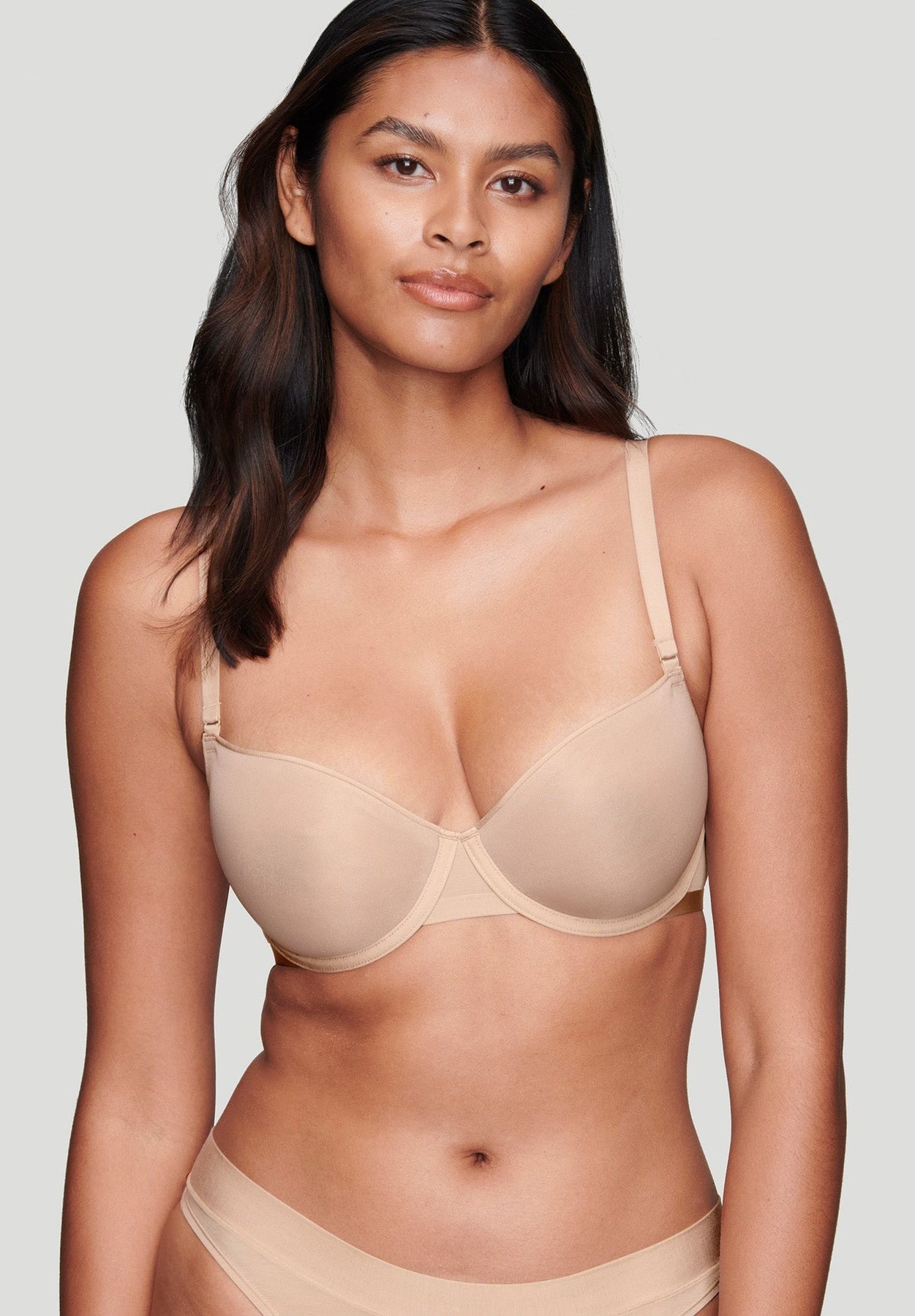 The Demi is our modern take on the everyday t-shirt bra. An elegant neckline and soft, supportive cups molded from 3D spacer fabric provide non-creasing, smoothing coverage without any padding or foam.