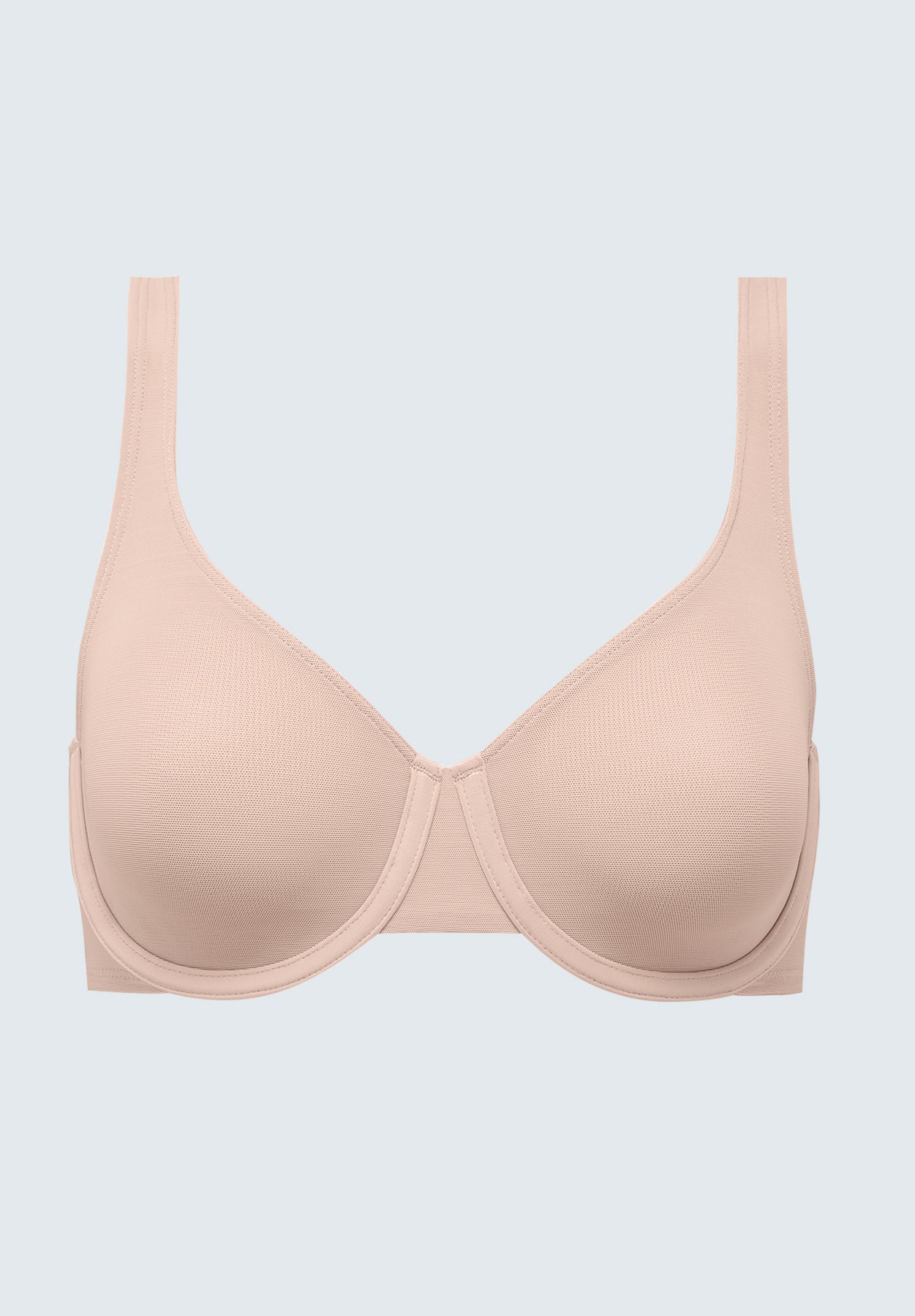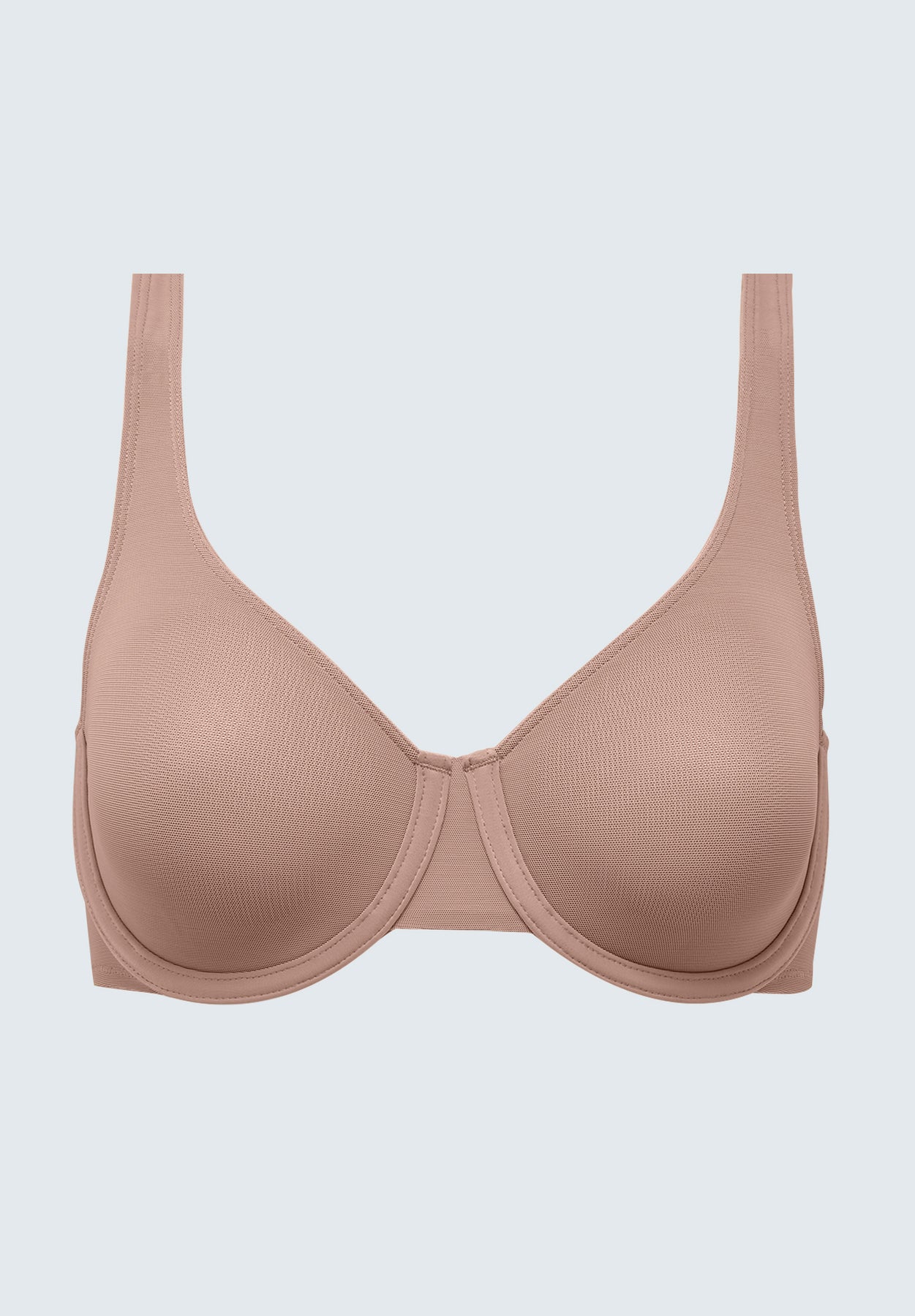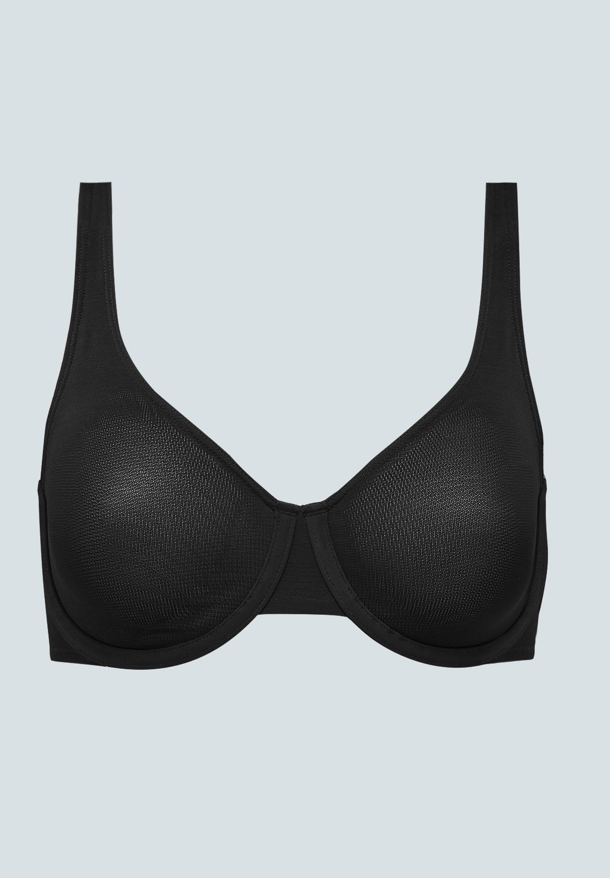 • Double-layer, unlined mesh cups are sewn, not bonded, providing semi-opaque nipple coverage
