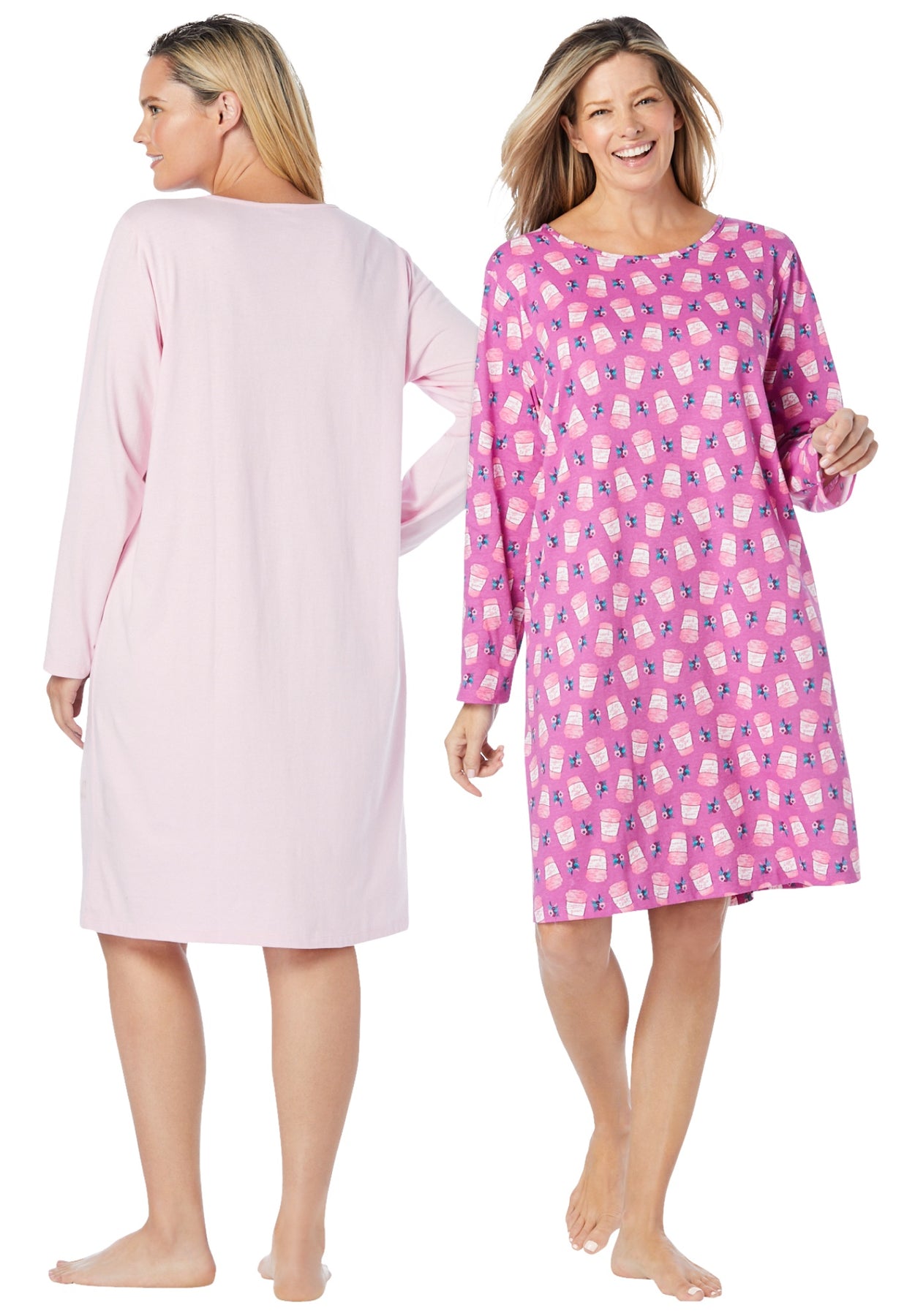 The fit and feel of this cotton jersey sleepshirt is so good, we've made it in a two pack. Fall in love with the easy, relaxed shape that's so comfy while you sleep. A knee length and long sleeves give just the right amount of coverage, and the cute graphics come in two different styles so you can switch it up whenever you please. Sleep tight.