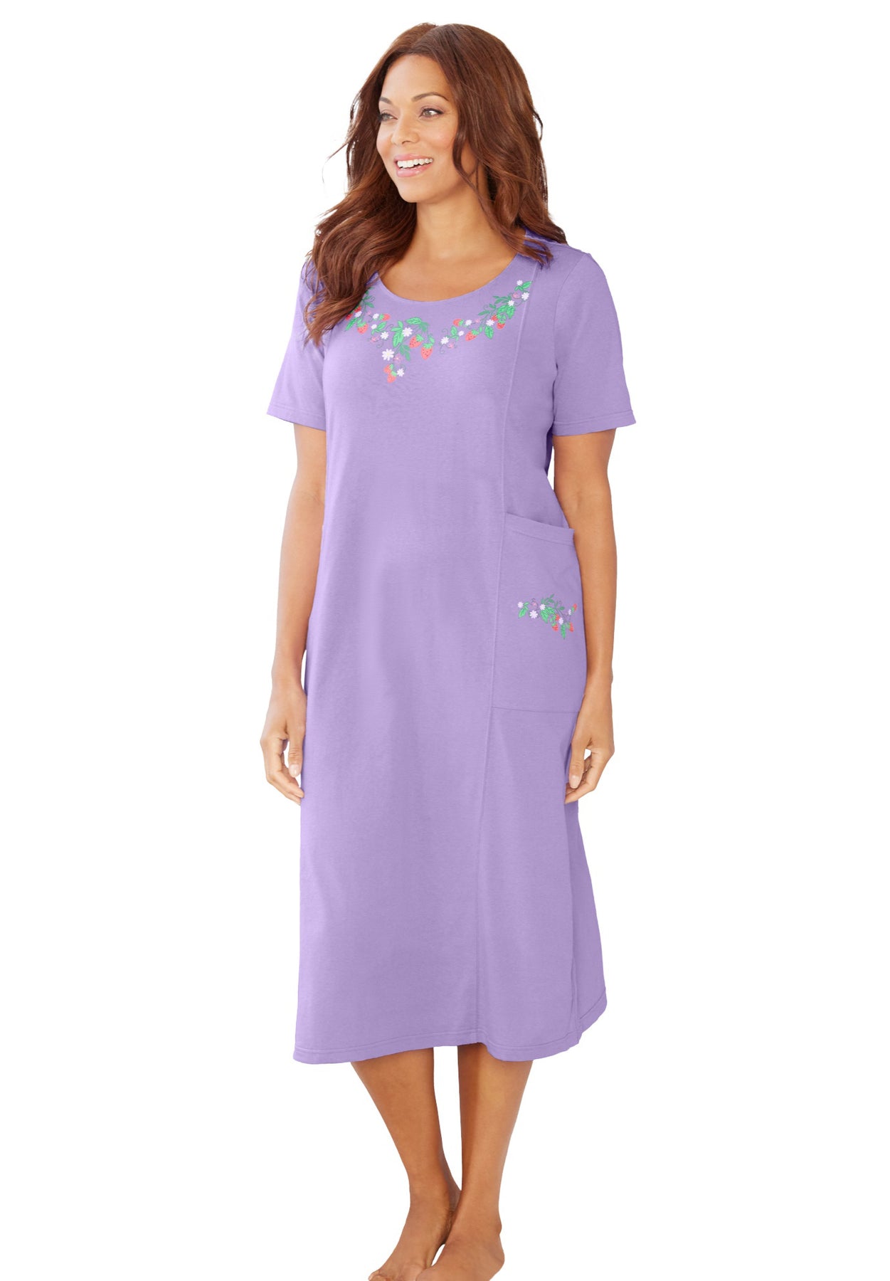 Made from pure cotton, this soft sleep shirt with a scoop neckline with print details. Princess seam on both front and back and side pockets. The A-line shape provides a relaxed feel and short sleeves are ideal for sleeping comfort. The perfect piece for lounging around.