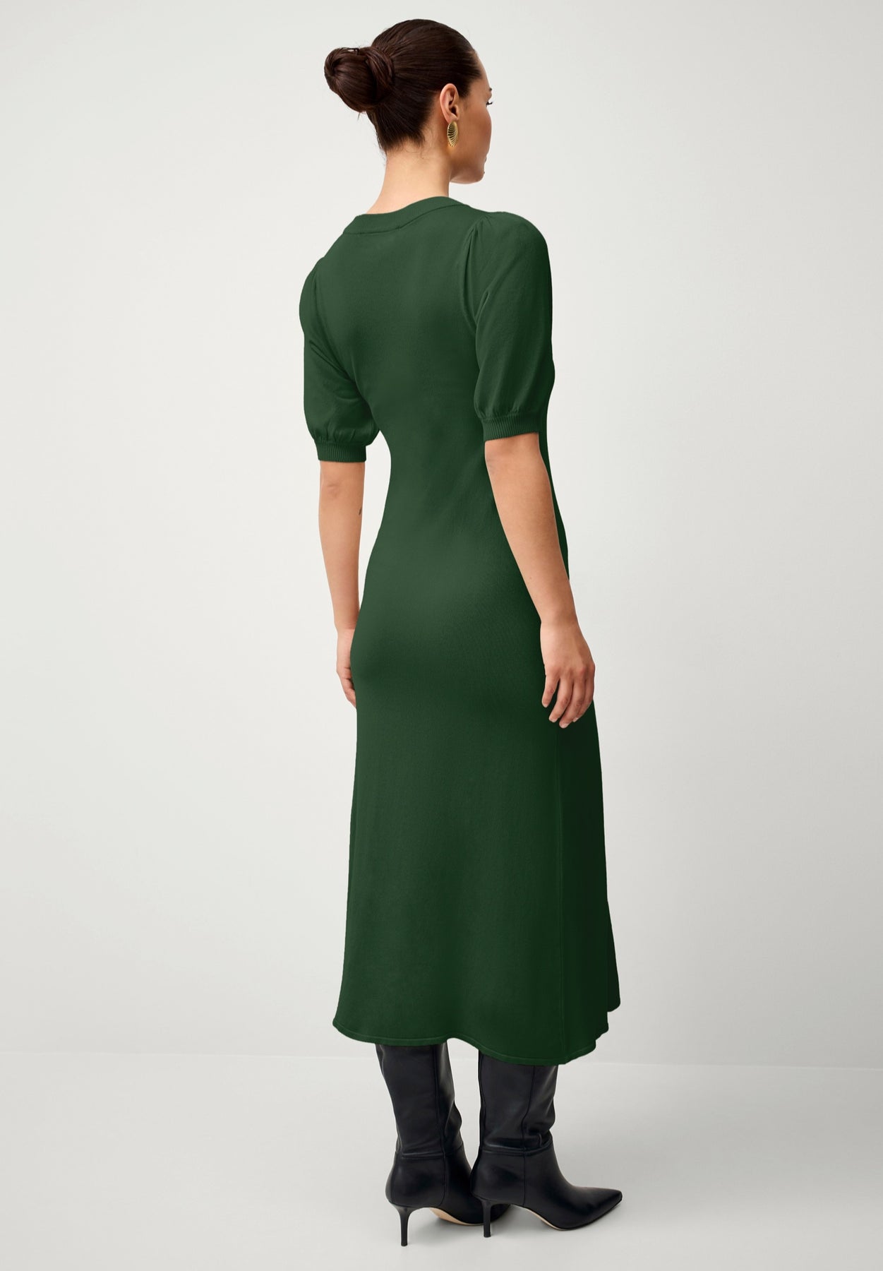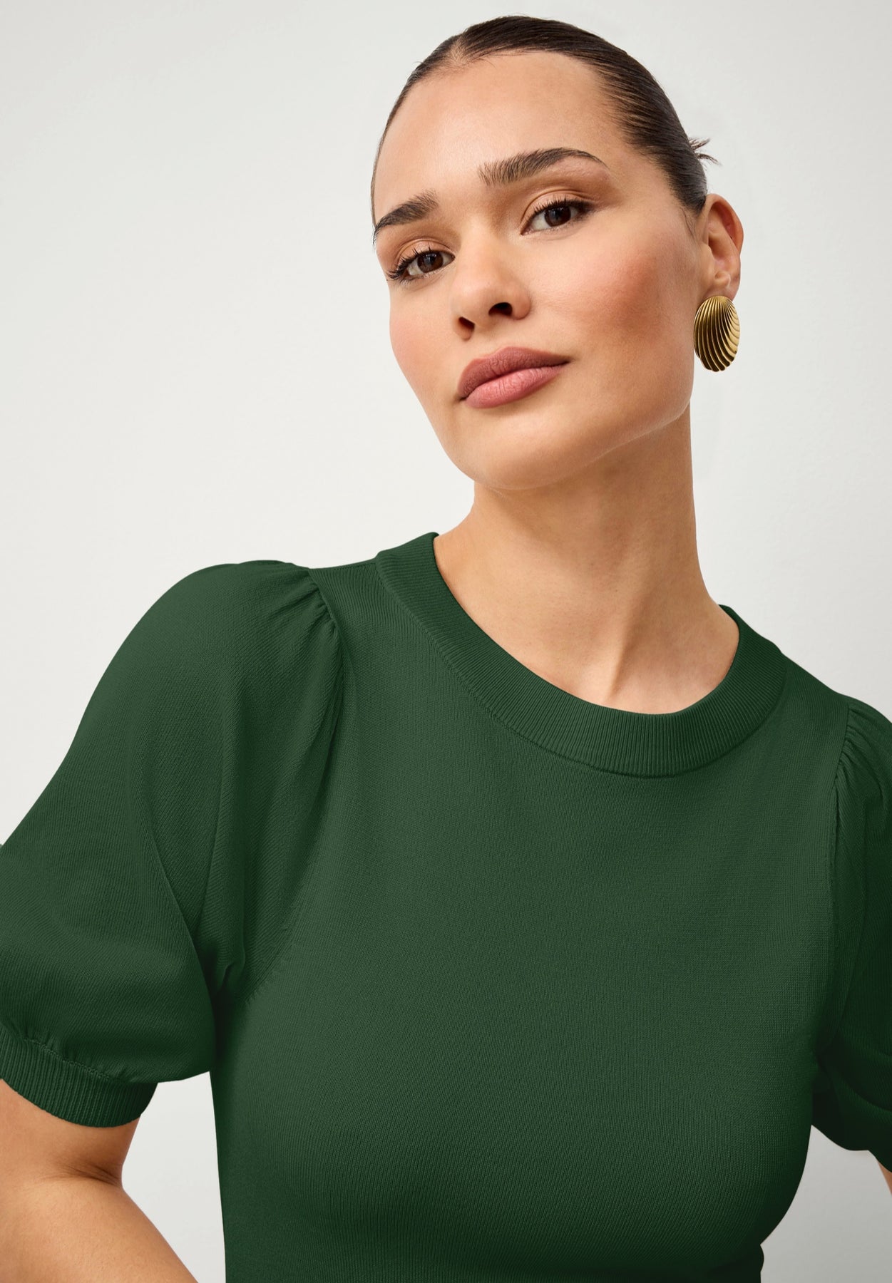 A chic, simple, and lightweight sweater dress is a must-have for your closet. With its feminine blouson, short sleeves and classic midi length, the styling possibilities are endless. You can easily elevate your look by layering it with a denim jacket and white sneakers, or by pairing it with ankle boots and a leather jacket. Looking effortlessly put together is as easy as 1, 2, 3!