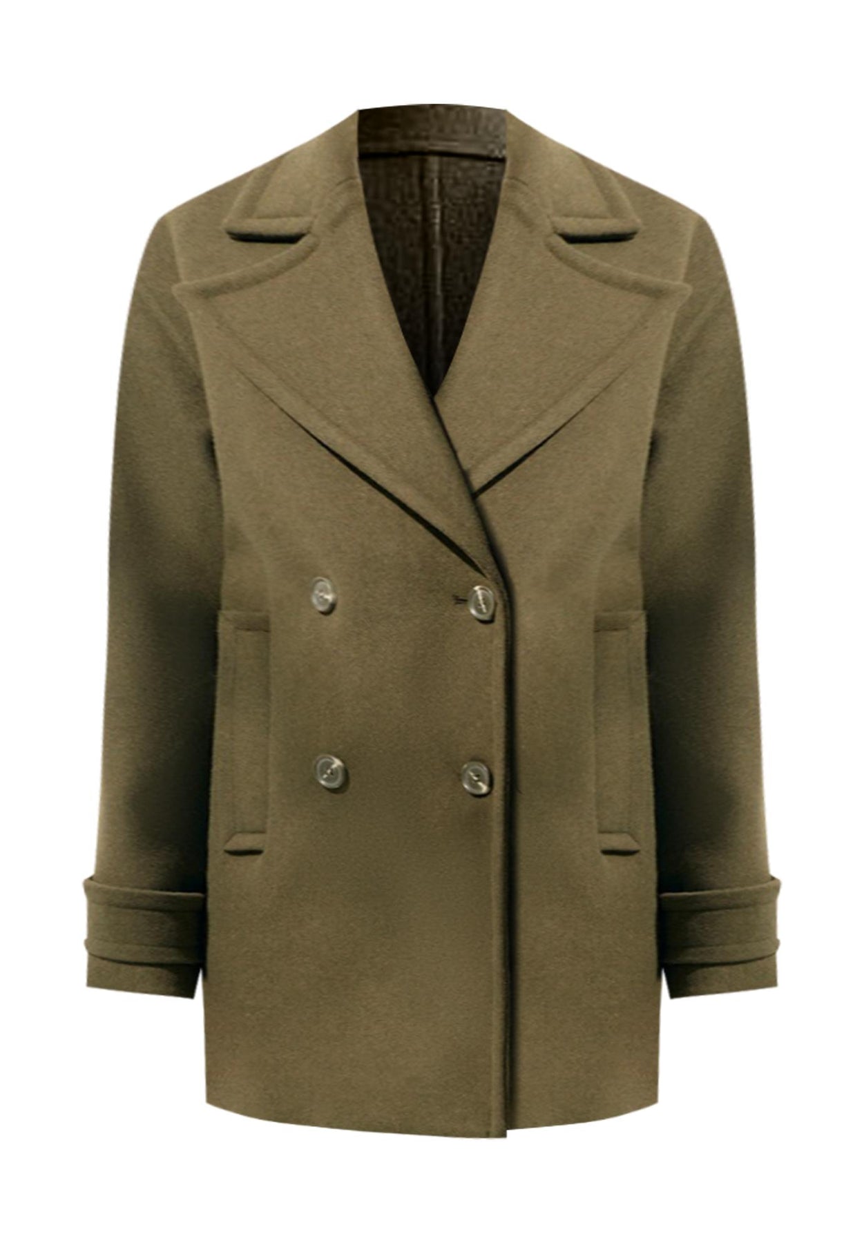 The traditional peacoat updated with a double-breast silhouette, oversized collar and a relaxed, modern fit. Fashioned of a warm wool blend that looks crisply chic but has a soft, beautiful drape.