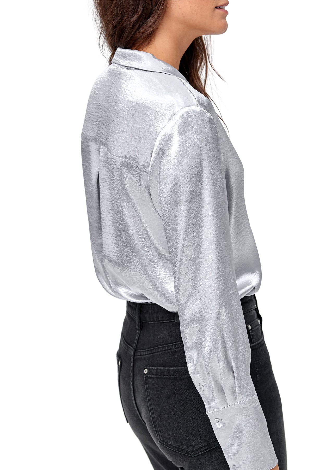 This lovely satin blouse will draw your attention with its high-shine look & casual vibe. Whether you decide to pair it with our metallic knit skirt for a night out or dress it down over denim or layered with a slouchy sweater — there's pretty much no wrong way to wear it.