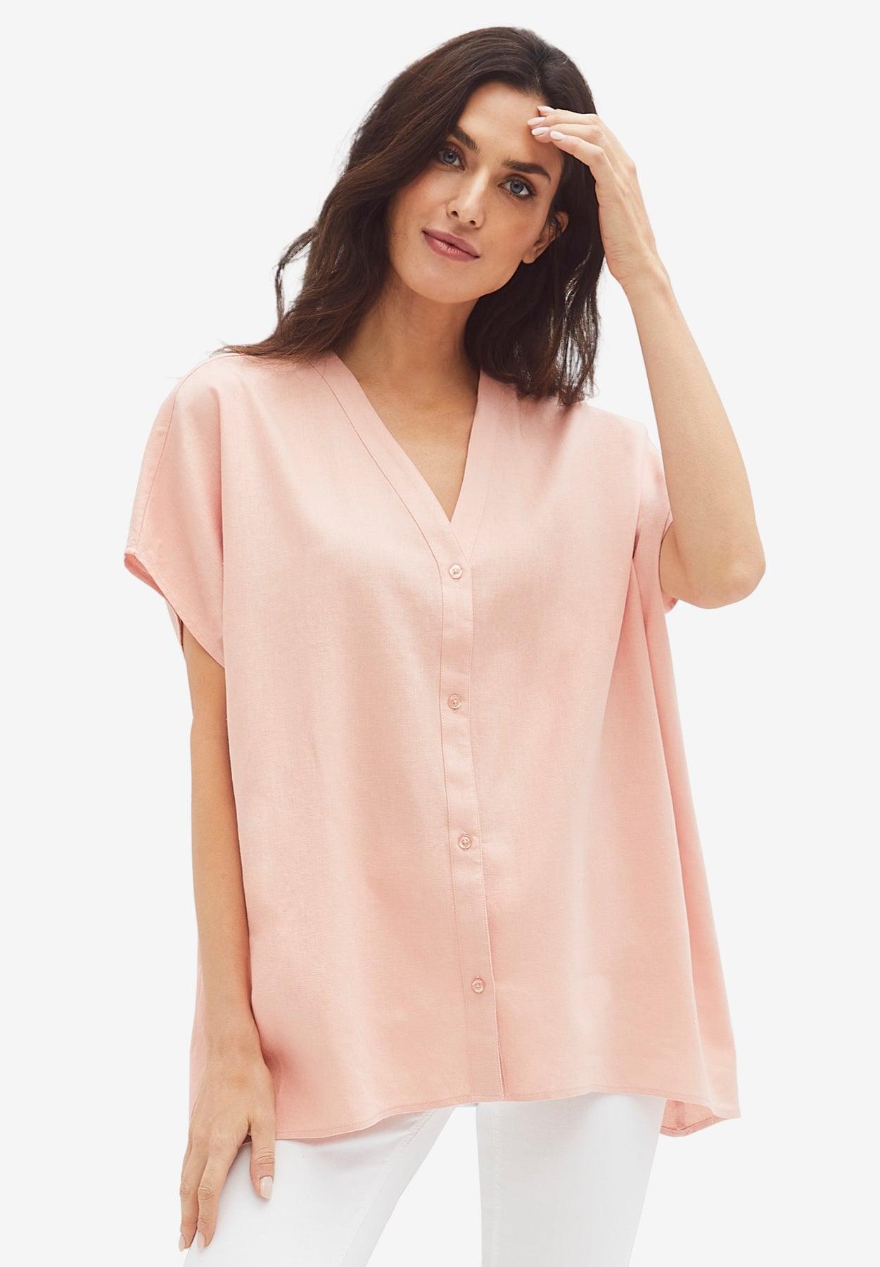 This oversized lightweight linen-blend tunic is a foundation piece for any well-rounded wardrobe. Its easy-carefabric makes it a go-to for travel. Style it with jeans for a casual look or pair it with our linen shorts on vacay!
