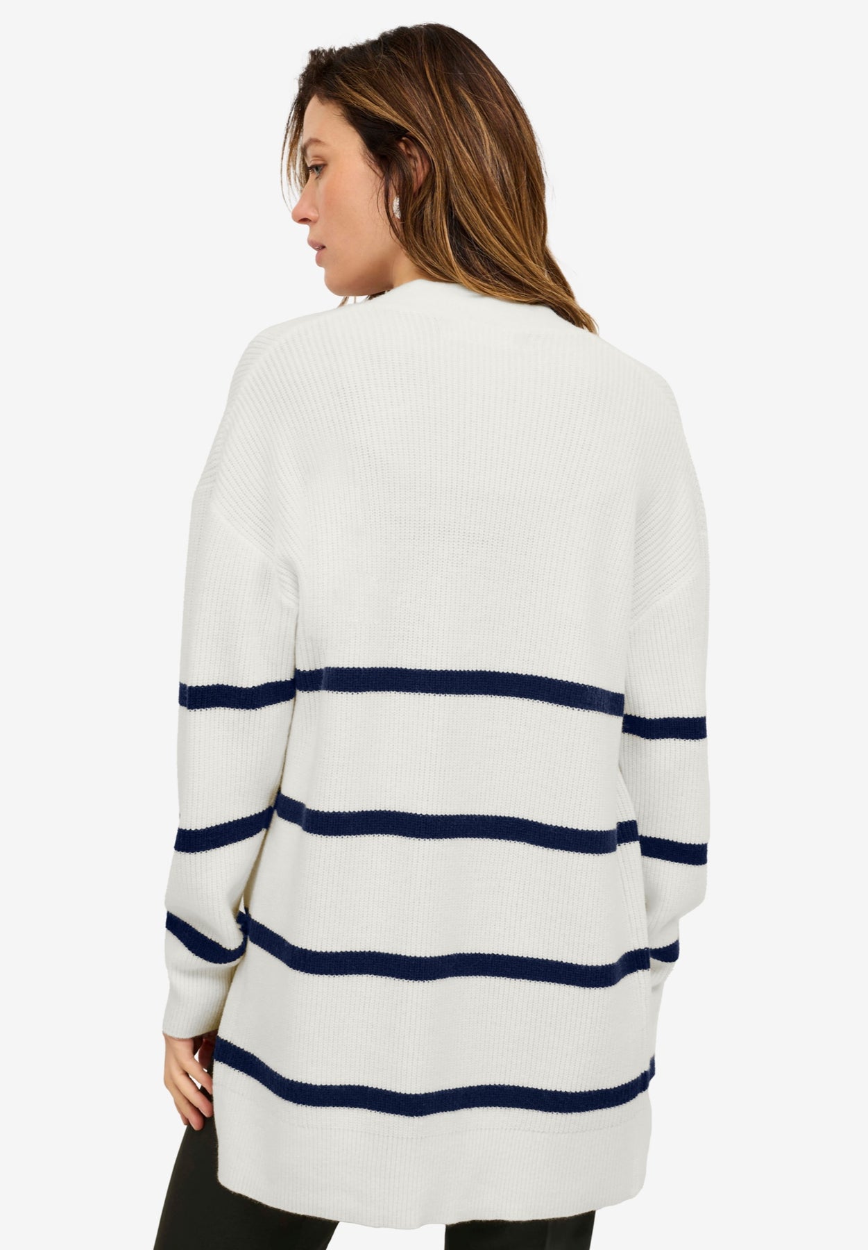 Be prepared to reach for this cardigan again, and again. Its lightweight, breathable, and cozy. Wear it in a chilly office during hot months or layer it under your coat during colder months. The classic stripe coordinates easily with all your favorite outfits.